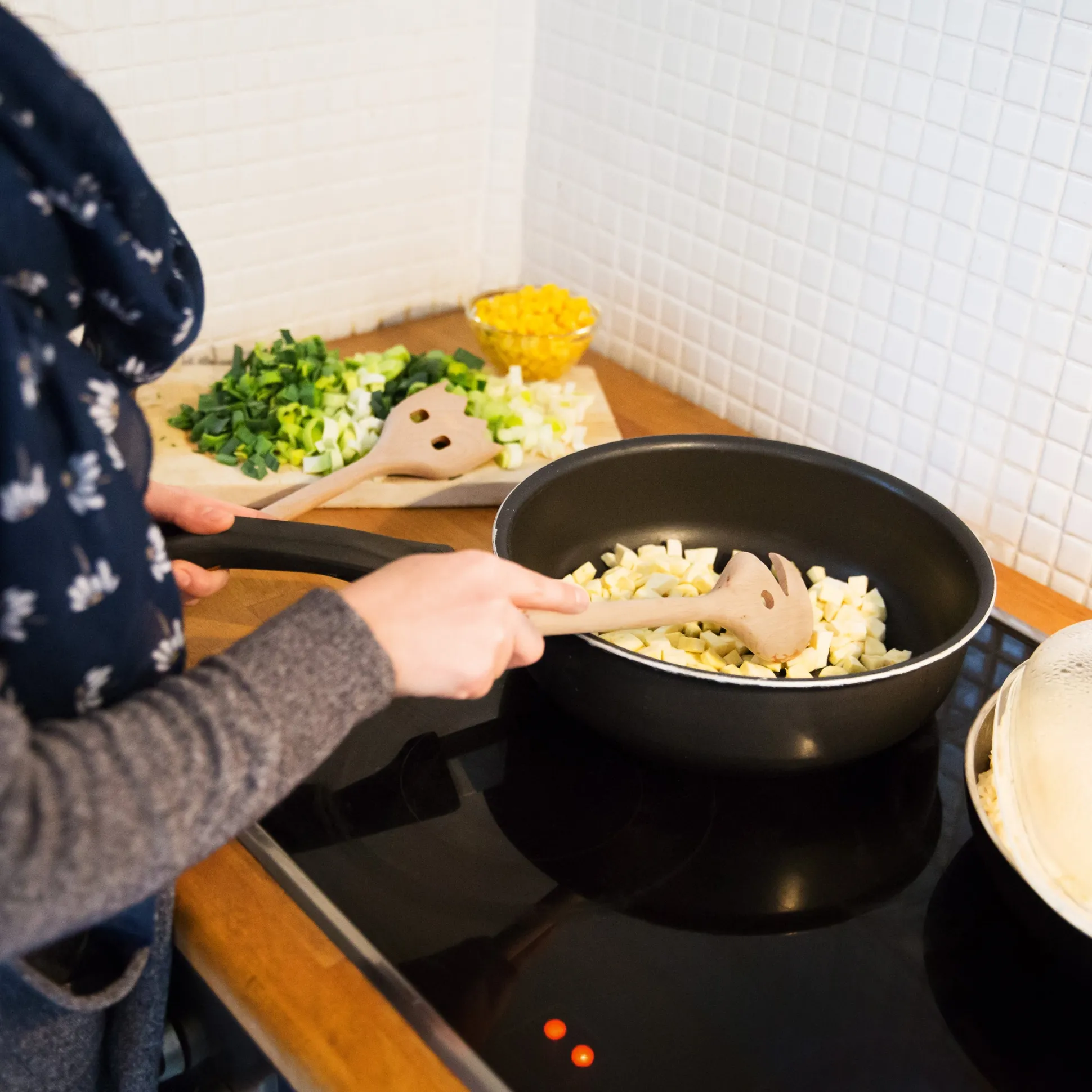Falls Du noch nicht so ganz überzeugt bist, kann unser Arcade-Holzlöffelset Dich vielleicht überzeugen. Diese aus Buchenholz gefertigten Löffel bringen einen gefräßigen Kreis und einen Geist aus der goldenen Zeit der Arcade-Spiele in die Küche und können Dir helfen, Deine Furcht vor dem Grünzeug zu überwinden. Solltest Du ähnlich fundamental in Deinen Ansichten sein wie einige unserer Kollegen, kannst Du aber auch Kartoffelsalat, Bacon oder Steaks mit den Löffeln hin- und herschaufeln. 😉 Es lässt sich damit natürlich auch ganz hervorragend in dampfenden Kochtöpfen rühren.
