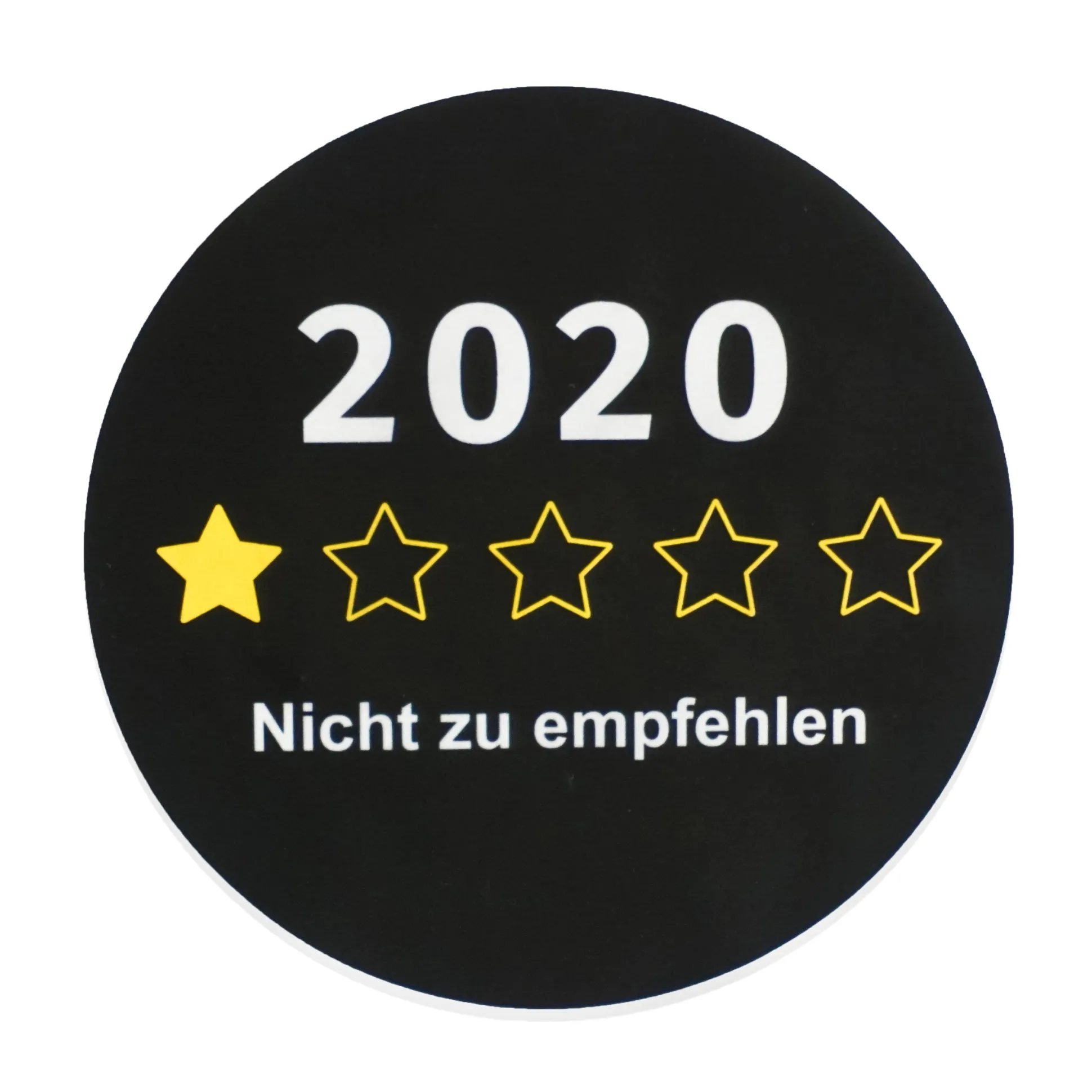 Unser Aufkleber 2020 hilft dir, deinen Frust auszudrücken, aber auch auf bessere Zeiten zu hoffen – denn schlechter als 1 Stern kann es ja kaum werden. 😉