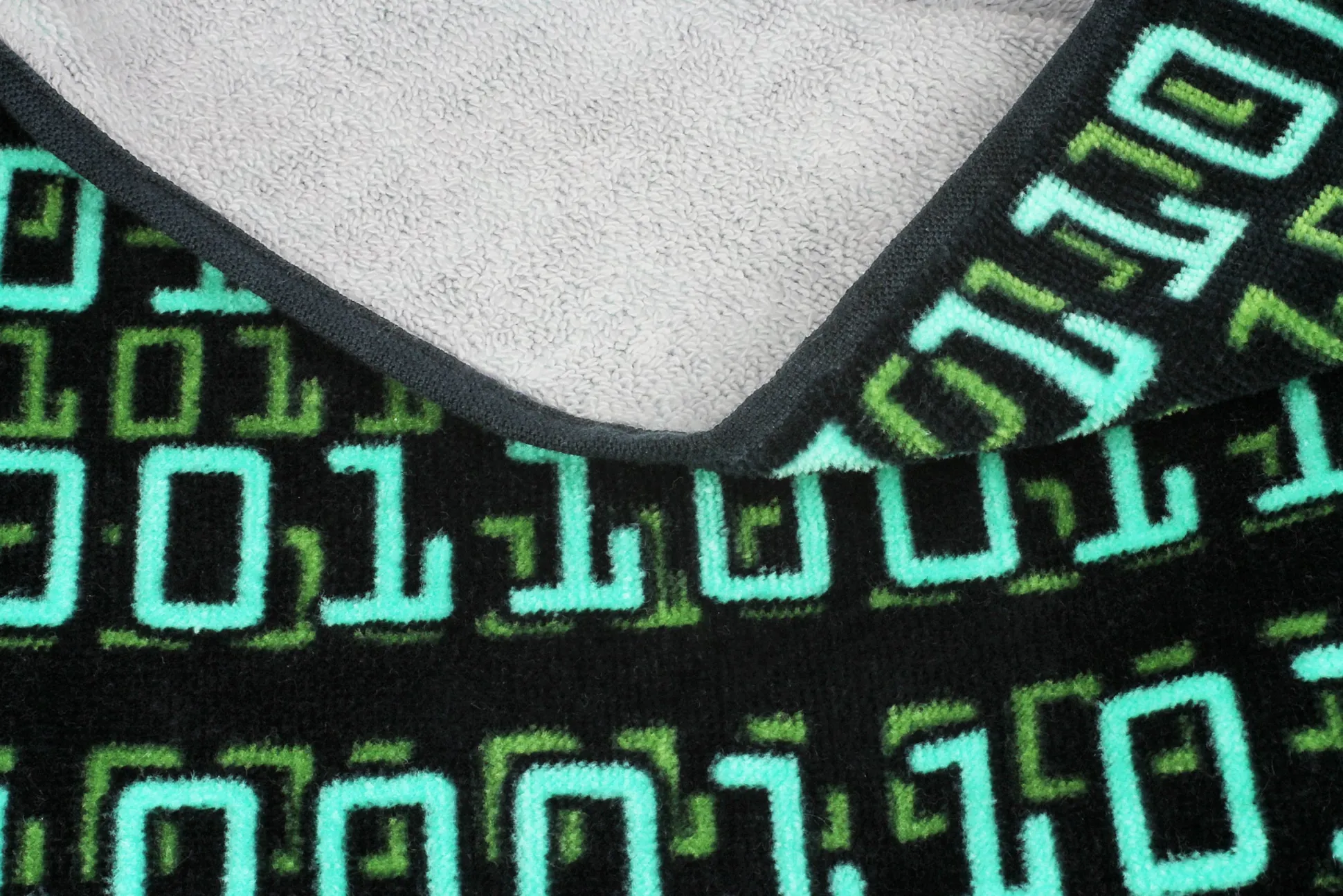 - Badehandtuch mit Nachricht in Binärcode.