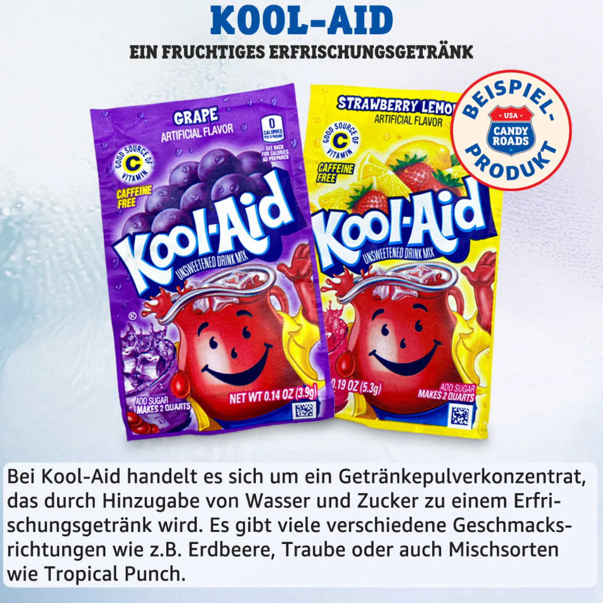 - Enthält u.a. Kaubonbons, Schokolade, Popcorn, Chips und andere amerikanische Spezialitäten