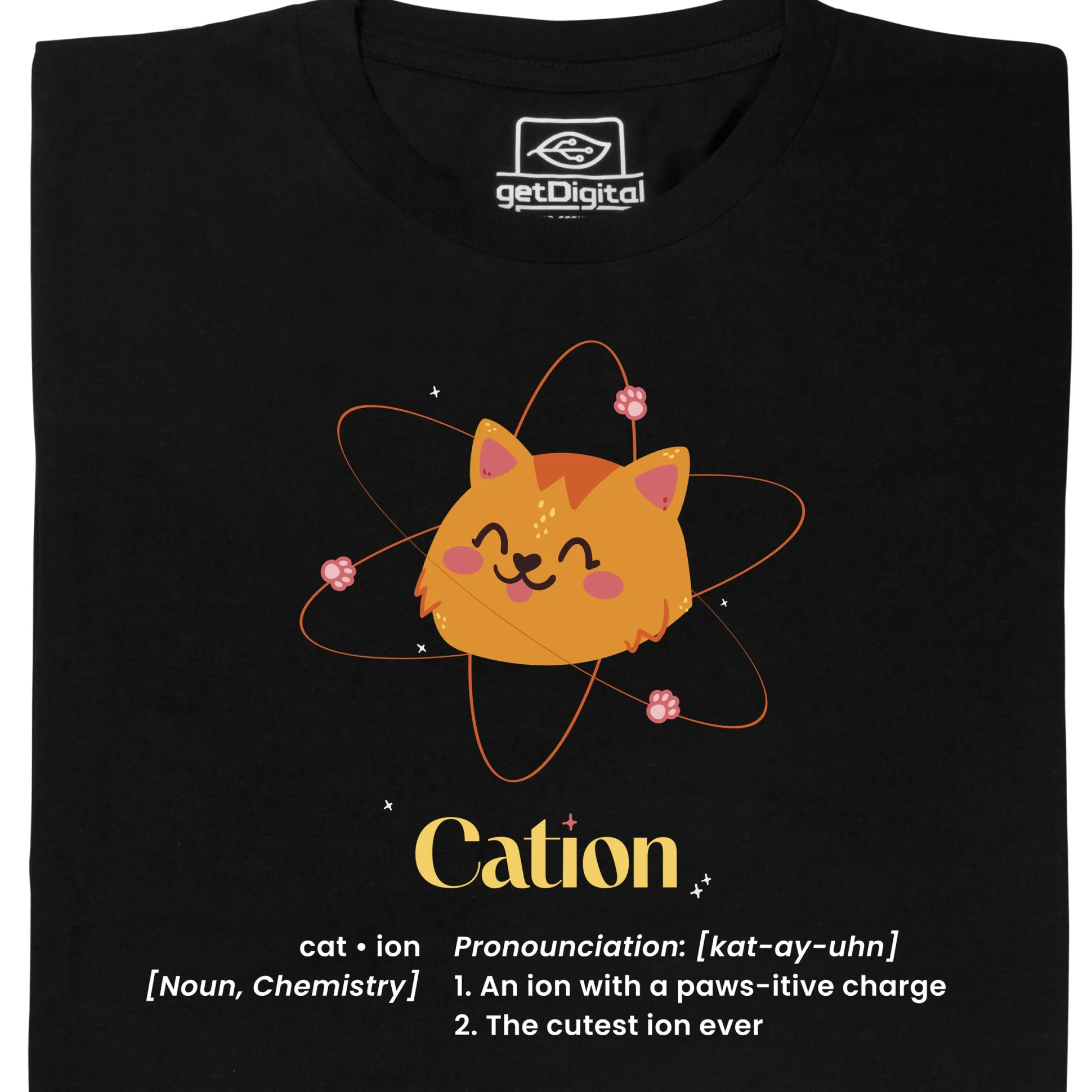 Du liebst Wissenschaft, Katzen und gute Witze? Dann erfüllt das Cat-Ion Shirt alle Kriterien für das perfekte Nerd-Shirt. Das Motiv spielt auf den Namen eines positiv geladenen Ions an, Kation (engl. „Cation“), was sehr nach Cat-Ion, also Katzen-Ion, klingt. So ein Katzen-Ion ist nicht nur extrem niedlich, sondern hat natürlich auch eine paw-sitive (positive) Ladung. Ein weiterer Beweis dafür, dass Katzen einfach alles besser machen… Zumindest wenn es nach uns ginge.