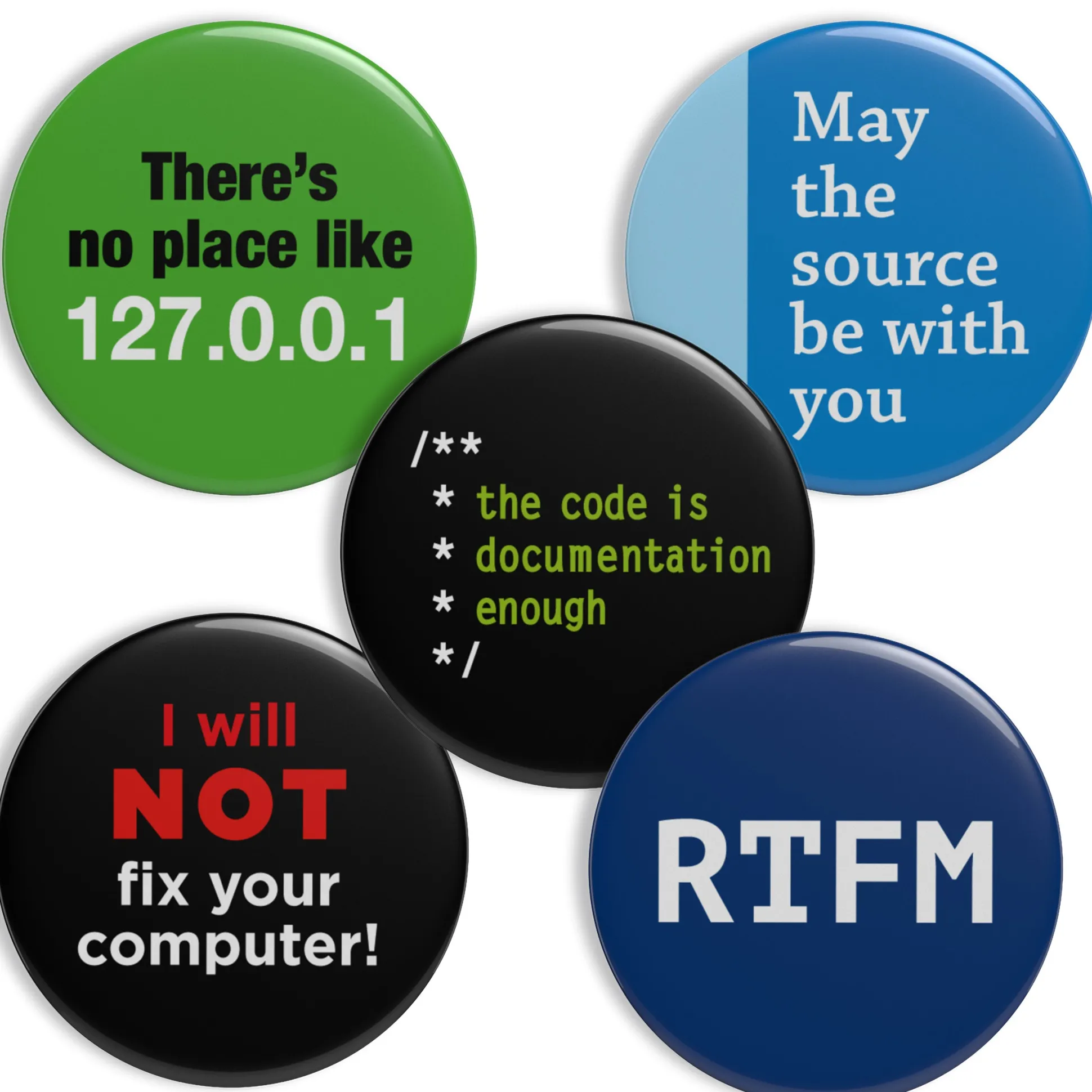 - Set aus 5 Geek-Buttons zum Verzieren von Kleidung und anderen Dingen