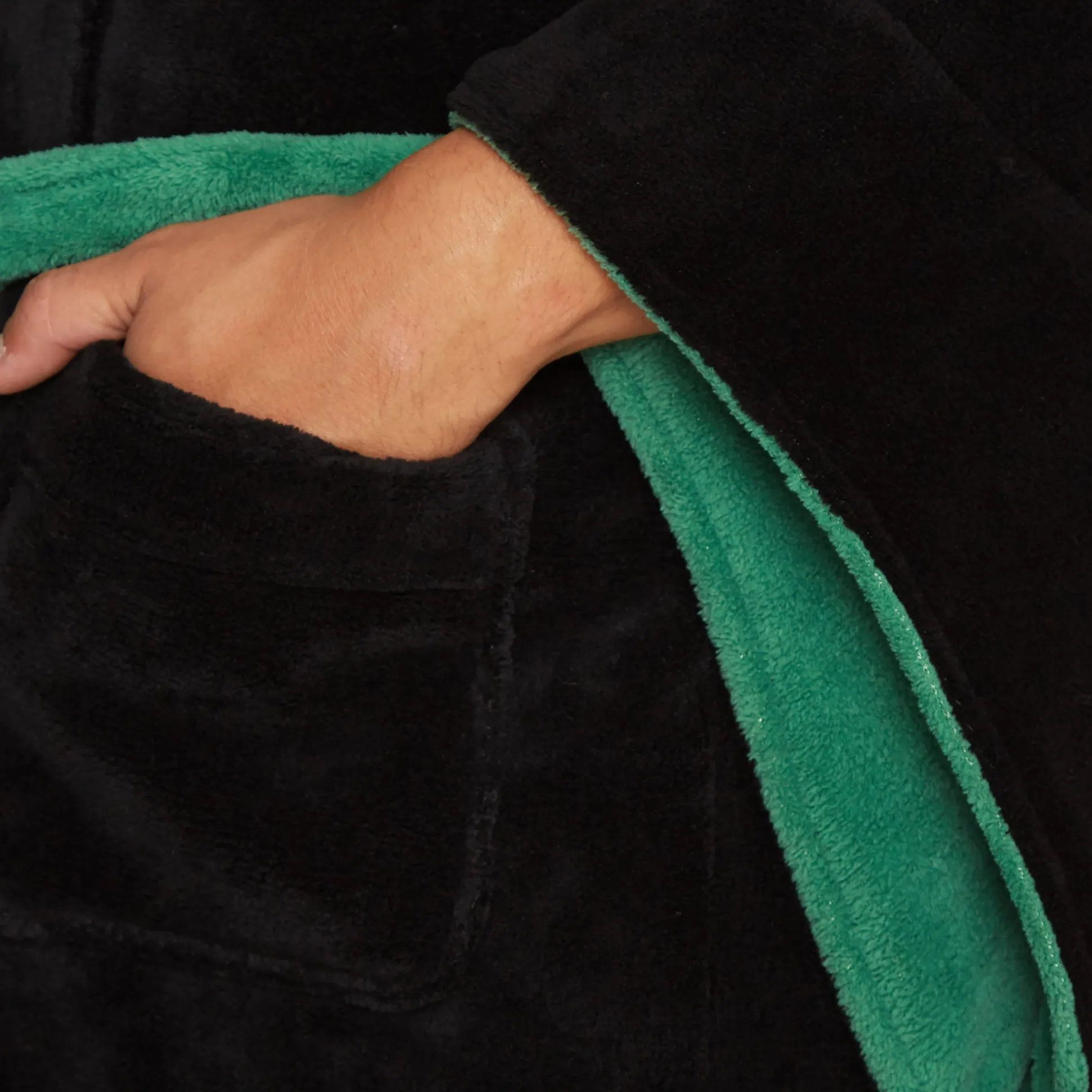 Diese flauschig weichen Bademäntel wurden in der Winkelgasse bei Madam Malkins von Hand hergestellt und werden auch Dich wohlig warm halten. Die Bademäntel der Häuser Gryffindor und Slytherin verfügen über eine spitz zulaufende Kapuze, einen Gürtel und einen Aufnäher, der je nach Variante das Wappen von Gryffindor (rot) oder Slytherin (grün) zeigt. Die Saumverzierungen und der Gürtel sind ebenfalls in den Farben des jeweiligen Hauses gehalten. Die Hogwarts-Bademäntel haben keine Kapuzen und sind mit dem Hogwarts-Wappen verziert.