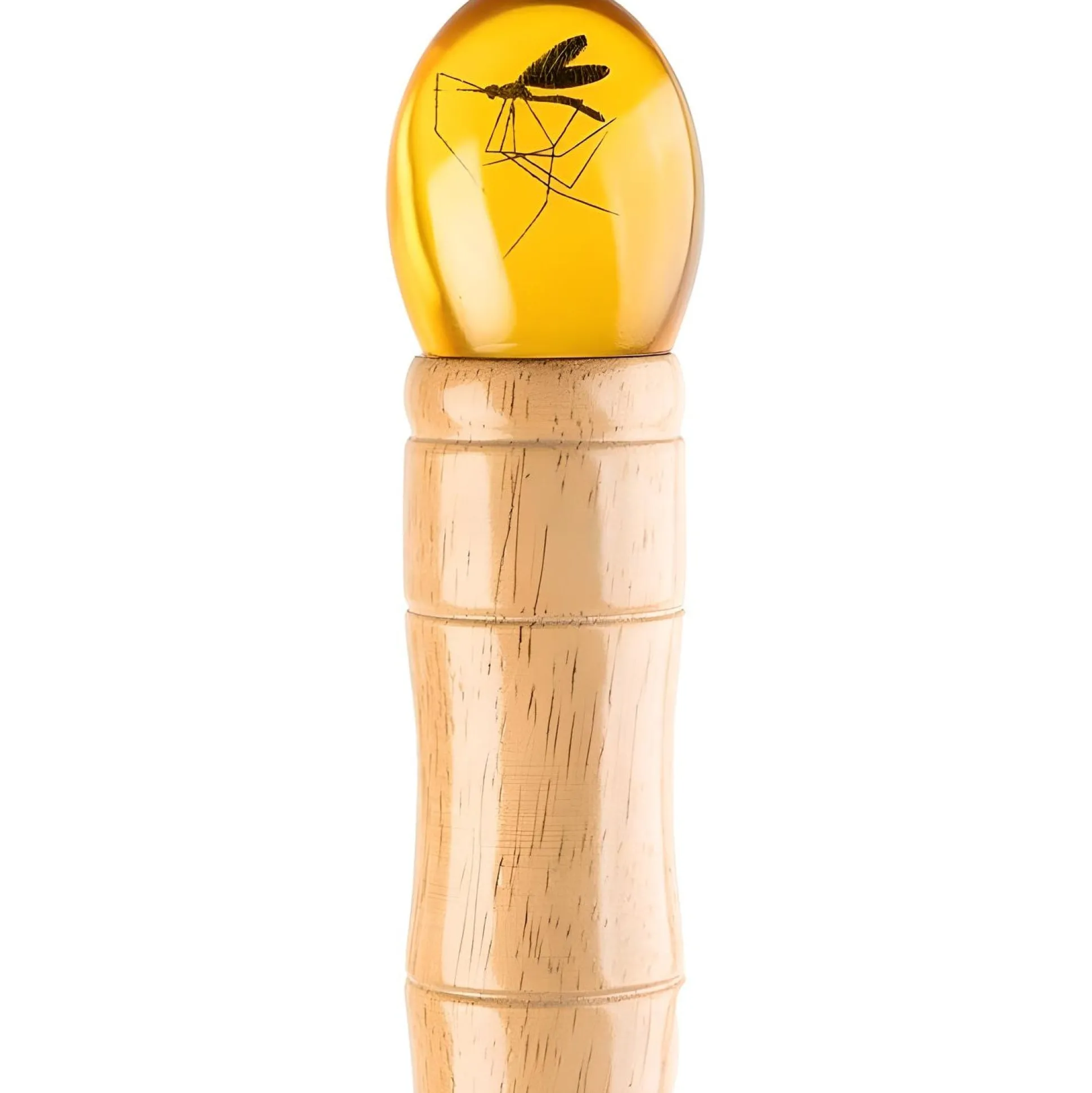 - Griff aus Rubberwood mit bernsteinfarbenem Harz und detailgetreuem Moskitomotiv