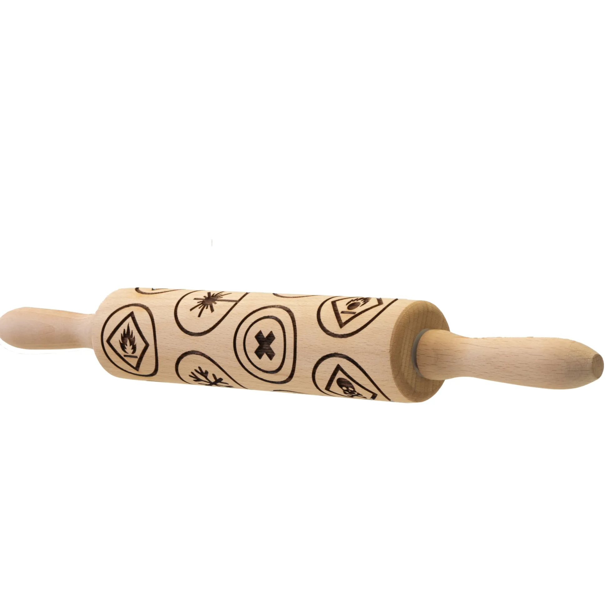 - Motiv-Teigrolle aus Buchenholz mit gängigen Warnsymbolen