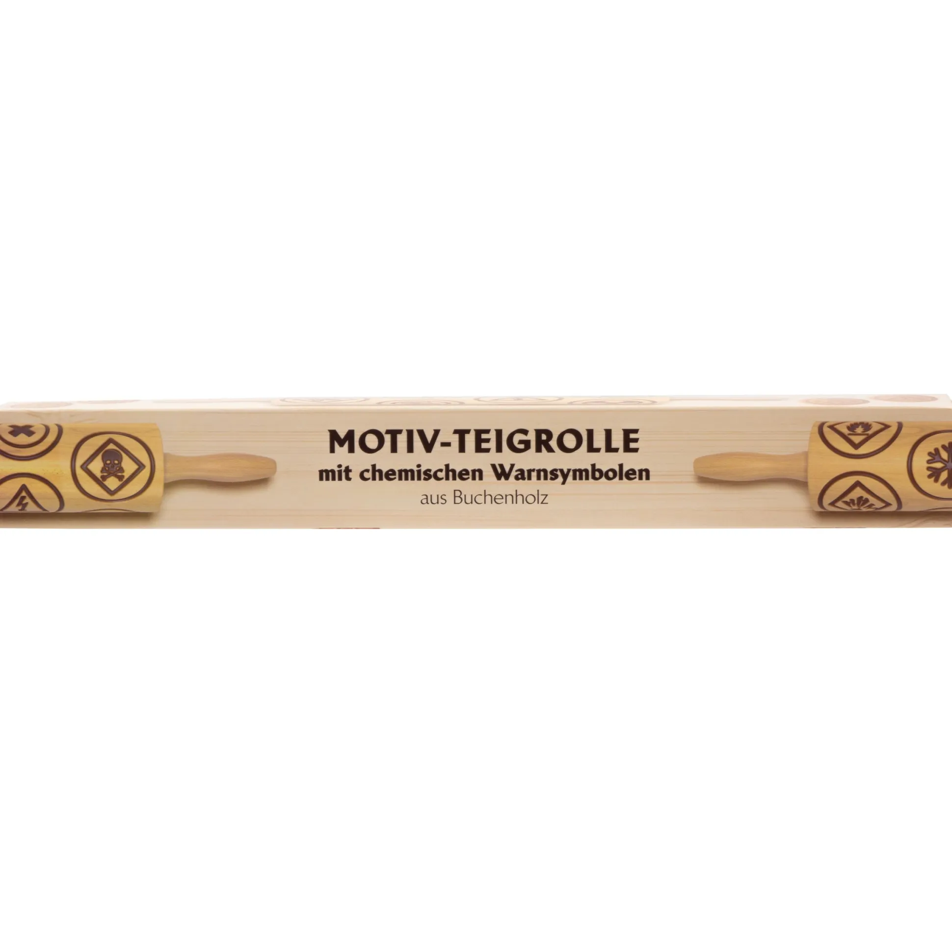 BeschreibungMotiv-Teigrolle mit chemischen Warnsymbolen