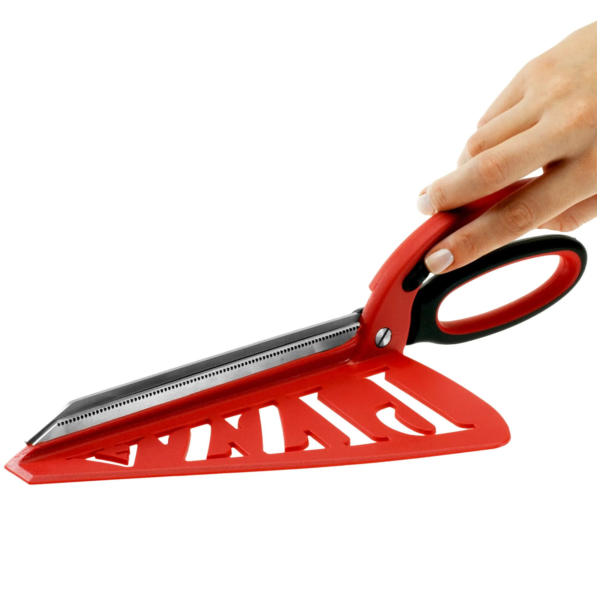 Mit der Pizza-Schere muss Du keine Brotmesser mehr zweckentfremden oder mit Pizzarollern kämpfen. Schneide den Teig samt Belag einfach mit dem einzig vernünftigen Zwei-Klingen-Prinzip. Der Käse wird nicht auf das Nachbarstück abrutschen, nichts wird vom Messer mitgezogen, Oliven werden gerecht zerteilt. Ein Traum!