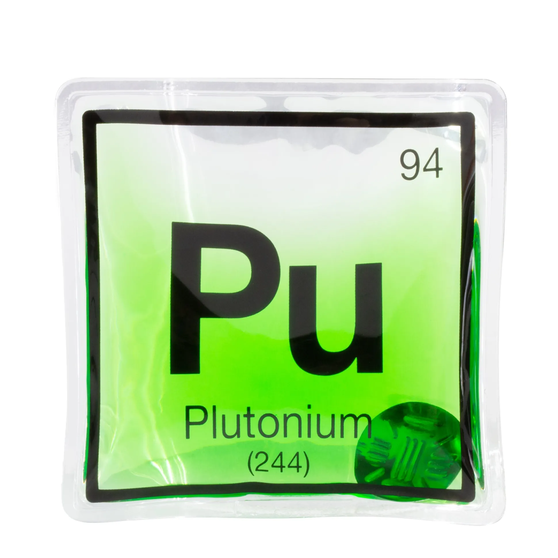 - Handwärmer in Form des Element-Symbols von Plutonium