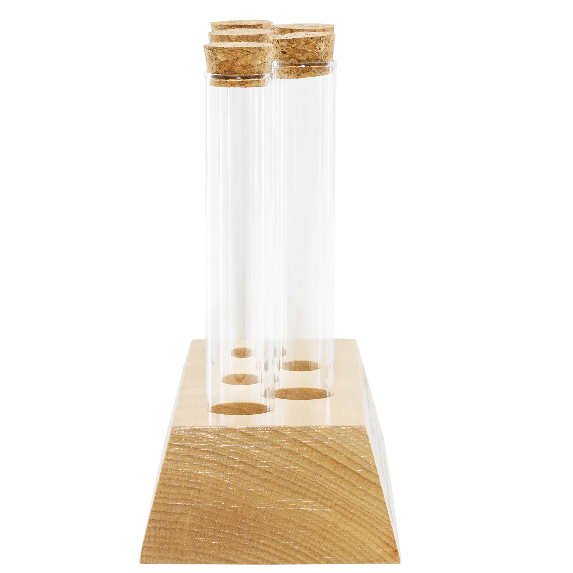 - Besteht aus einem Reagenzglas-Halter aus lackiertem Buchenholz sowie fünf Glasröhrchen mit Korken