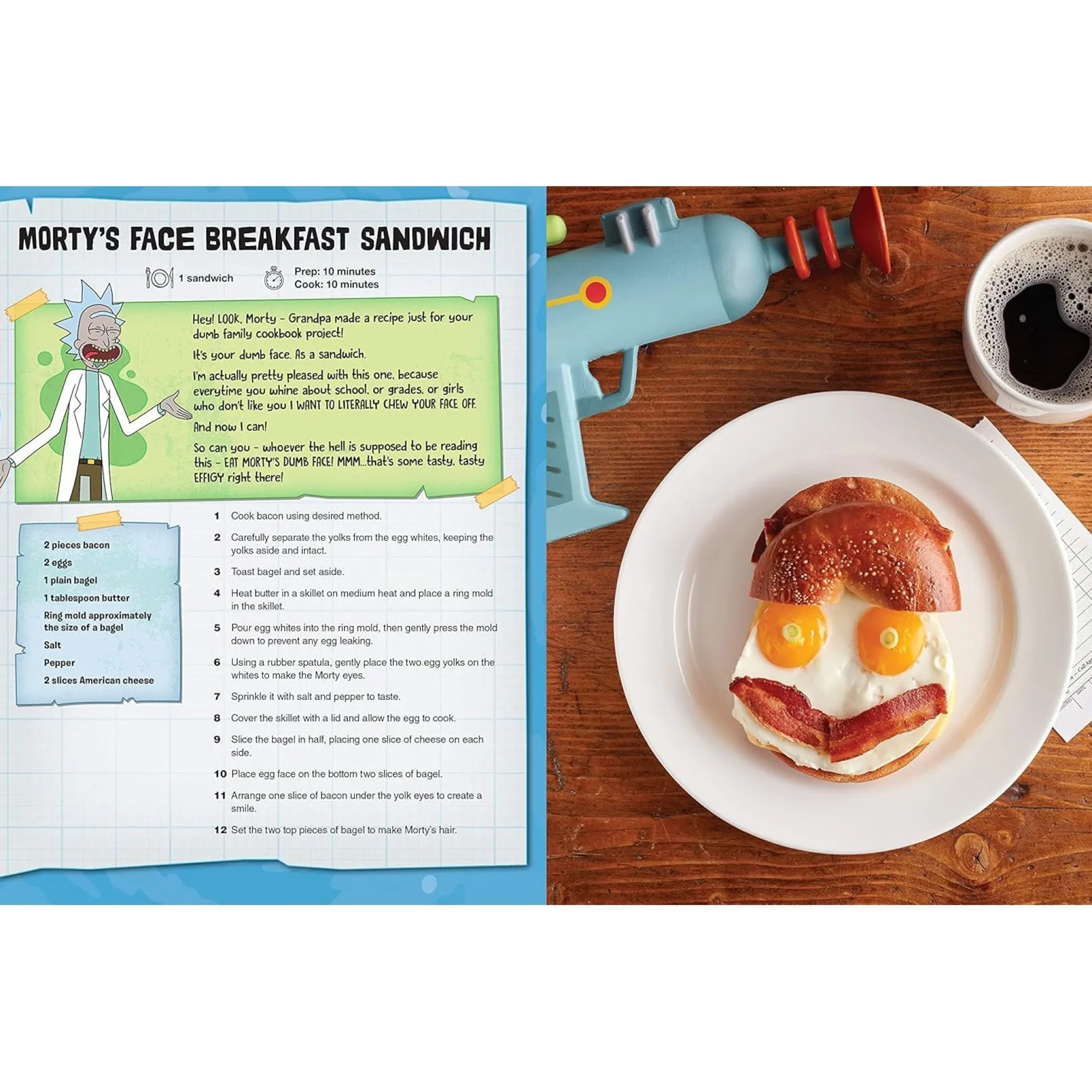 Ob du dich an Cronenberg Enchiladas, Cauliflower Portal Mash oder Mortys Gesicht in Sandwichform wagen willst – das Hardcover-Kochbuch ist auf Englisch verfasst und serviert dir Anleitungen mit Humor, kreativen Zutaten und reichlich Bildern, die auch für Kochanfänger*innen geeignet sind. Die Rezepte sind inspiriert von Episodenmomenten und Lieblingsgags der Fans – perfekt portioniert für alle, die gern kochen UND dabei lachen wollen.
