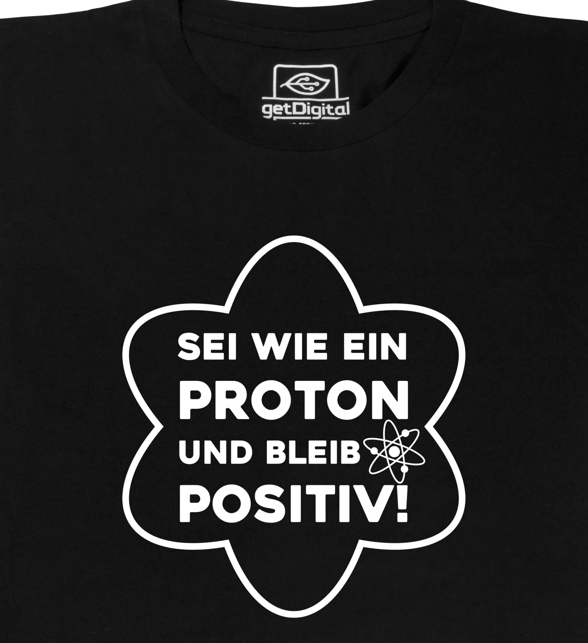 Dabei könnte es so einfach sein, wie dieses T-Shirt zeigt: Sei wie ein Proton, denn das ist von Natur aus positiv geladen, ohne dass es etwas dafür tun muss. Auch wenn du dich beim Anziehen des Shirts nicht auf magische Weise nur noch glücklich fühlst, ist der Spruch auf jeden Fall eine gute Erinnerung!