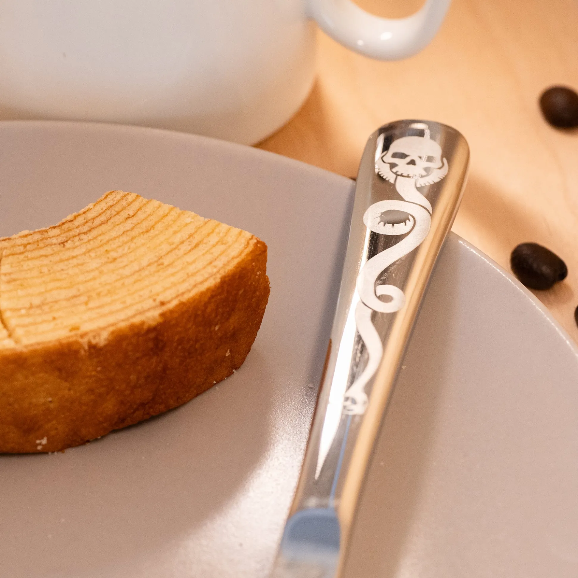 Gefertigt aus hochwertigem 304-Edelstahl, liegt das Messer mit seinen 22,8 cm Länge und 71 g Gewicht angenehm in der Hand. Der Schliff macht es perfekt zum Schneiden von Brötchen, Kuchen oder anderen Leckereien. Besonders auffällig: der kunstvoll verzierte Griff mit Schlange, Totenschädel und magisch wirkendem Design. Ganz gleich, ob beim Frühstück, bei einem gemütlichen Abend mit Freunden oder als dekoratives Besteckstück – dieses Messer sticht heraus.