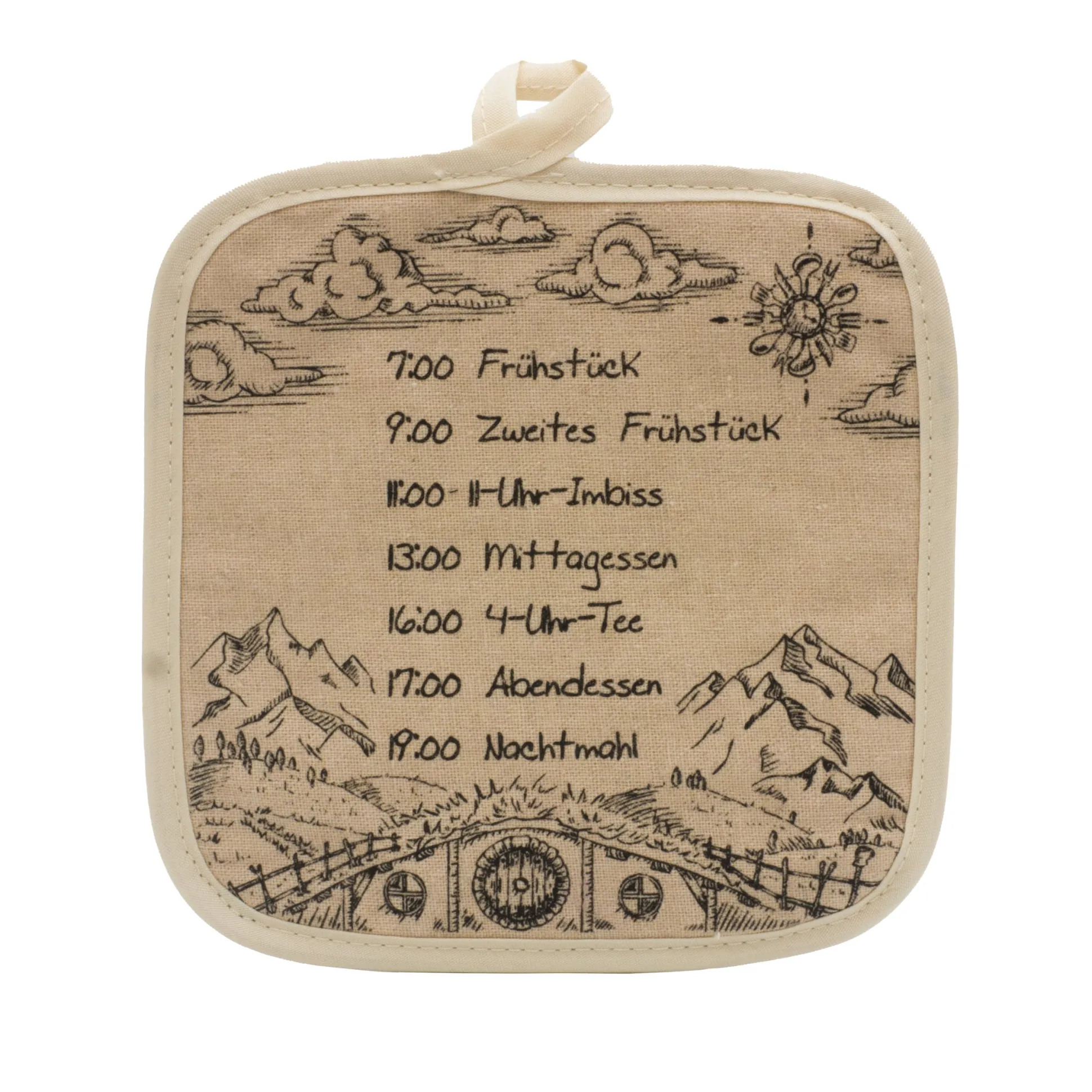 - Set aus 2 Topflappen mit dem Speiseplan der Halblinge aus dem Auenland