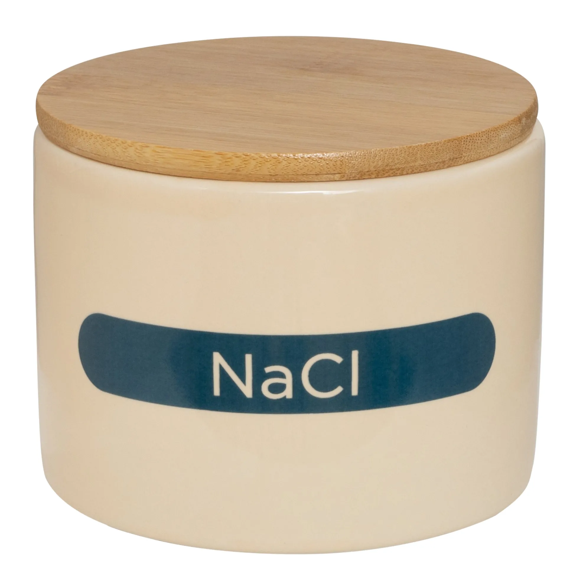 Für alle Chemiker*innen und sonstigen Wissenschaftler*innen gibt es jetzt den perfekt geeigneten Vorratsbehälter Salz mit chemischer Formel, mit dem ihr euch das Labor-Feeling jederzeit nach Hause in die eigene Küche holen könnt. Die Keramikdose ist mit der korrekten chemischen Formel für ihren Inhalt beschriftet. Der Deckel ist aus Bambus und hat eine praktische Silikondichtung.