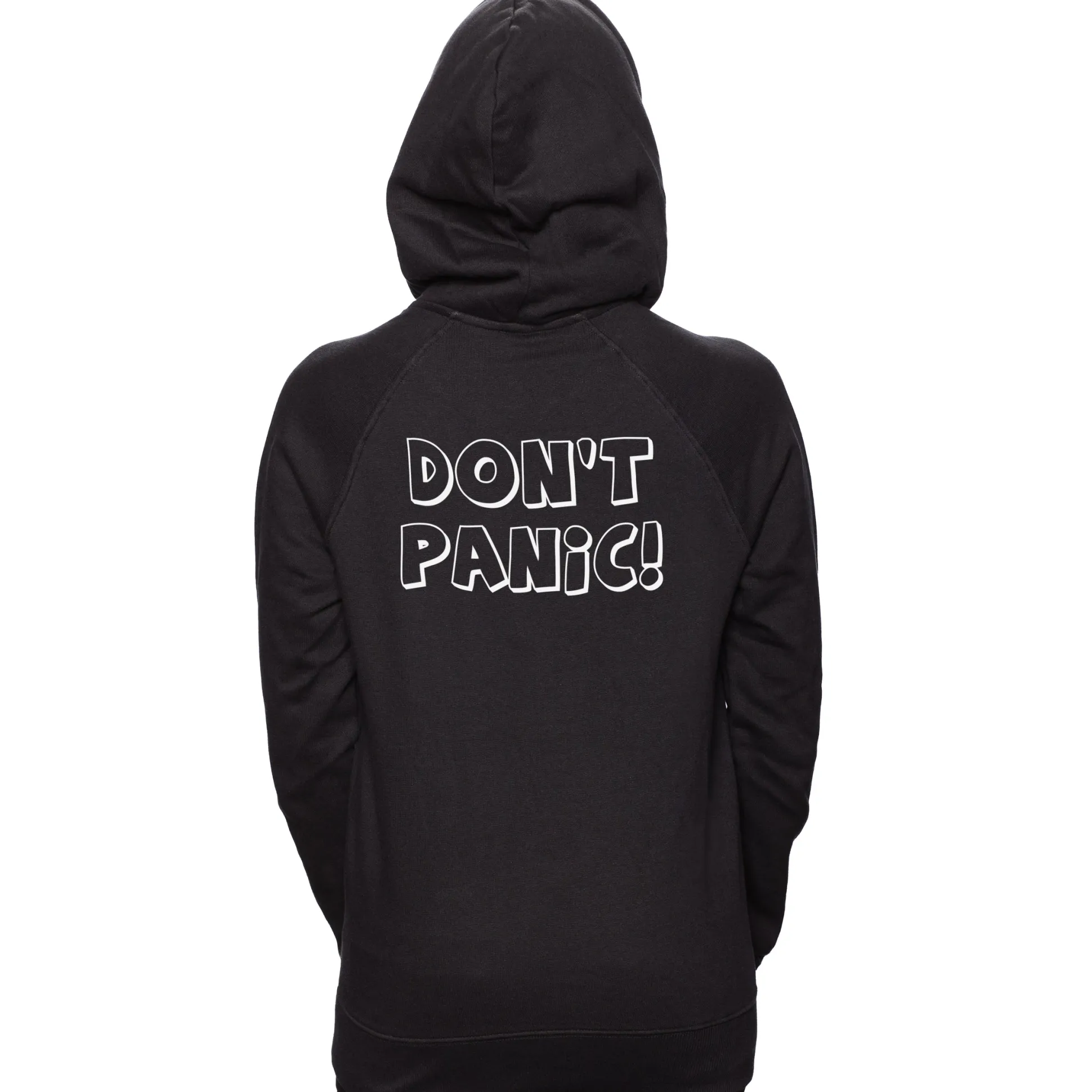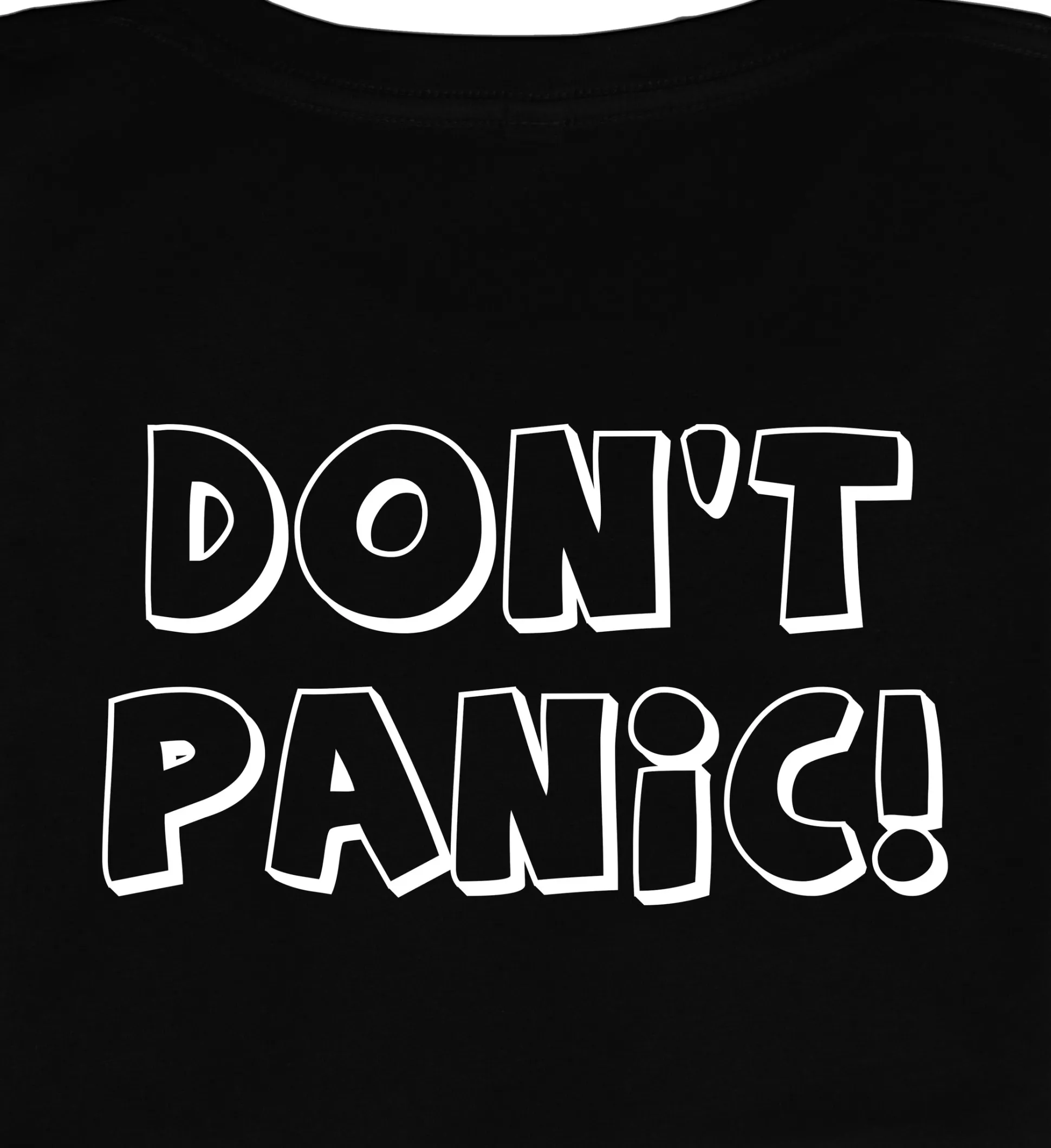 Auf der Rückseite steht passend dazu: „DON’T PANIC!“ (siehe weitere Bilder).