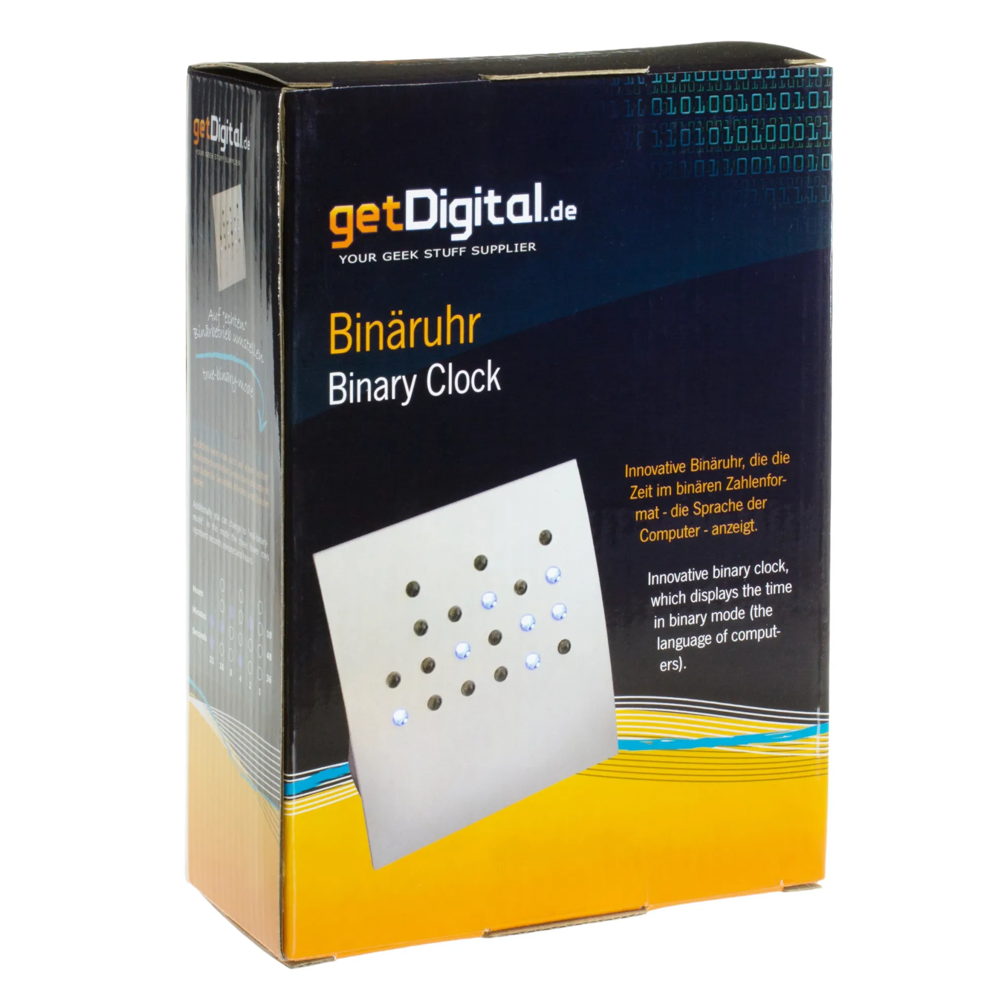 Um den Code der Binäruhr zu verstehen, guckst Du Dir am besten die Erklärung unter „Weitere Bilder“ an. Jede LED-Spalte repräsentiert eine Ziffer der Uhrzeit, wobei die Zahl binär dargestellt wird. D.h., die untere LED repräsentiert die 1, die zweite die 2, die dritte die 4 und die oberste die 8. Um die entsprechende Ziffer zu bekommen, musst Du dann einfach alle leuchtenden LEDs einer Spalte addieren.(Auf dem Bild ist die Uhrzeit z.B. 10:24:36)