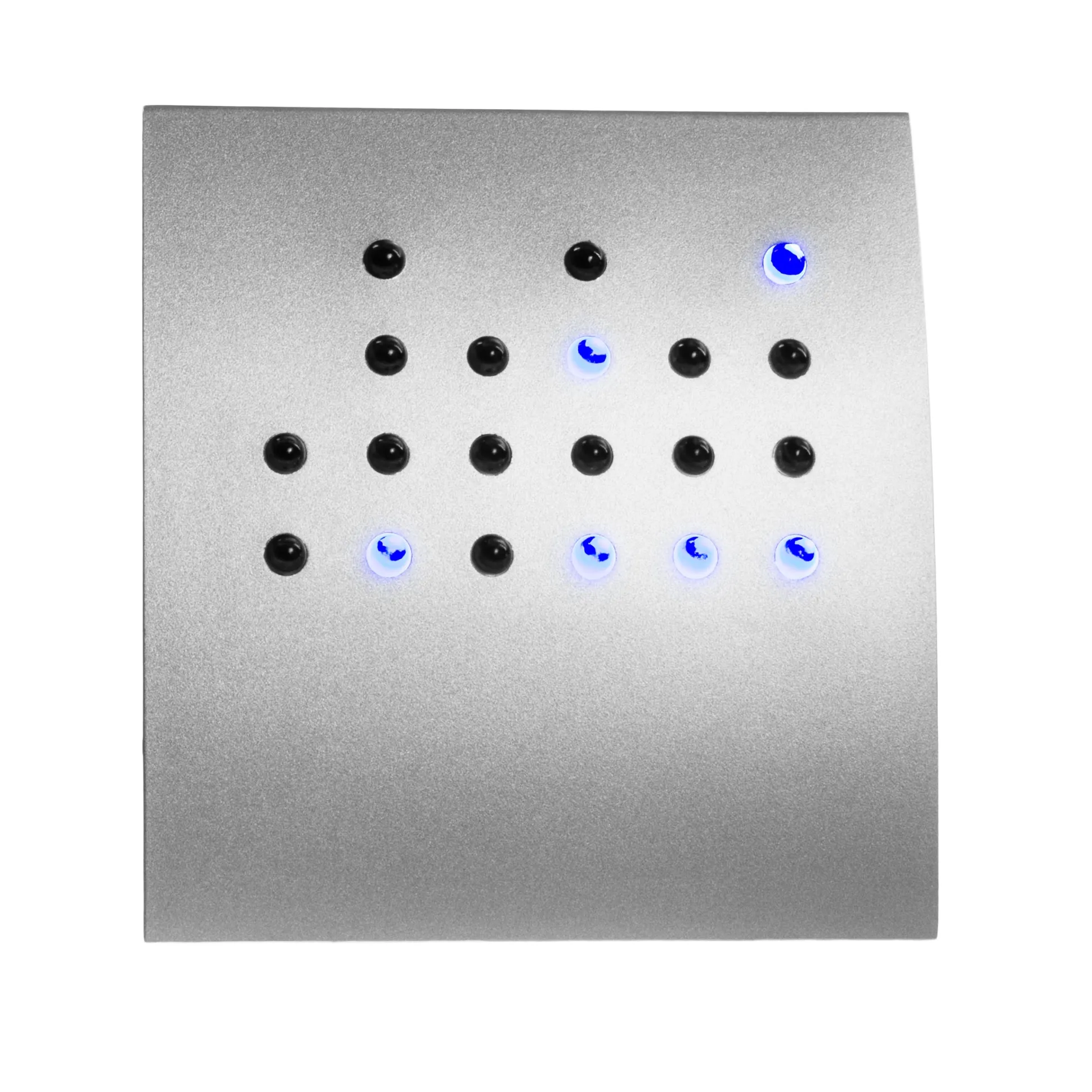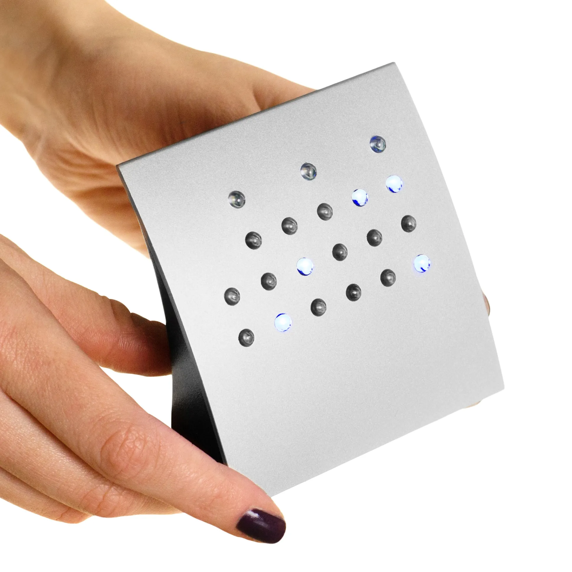 Zusätzlich kannst Du bei dieser neuen Edition der Binäruhr auch auf einen „echten“ Binärbetrieb umstellen, wobei dann die unteren drei Zeilen für Sekunden, Minuten und Stunden stehen. (Auf dem Bild ist die Uhrzeit in diesem Modus z.B. 5:11:34)