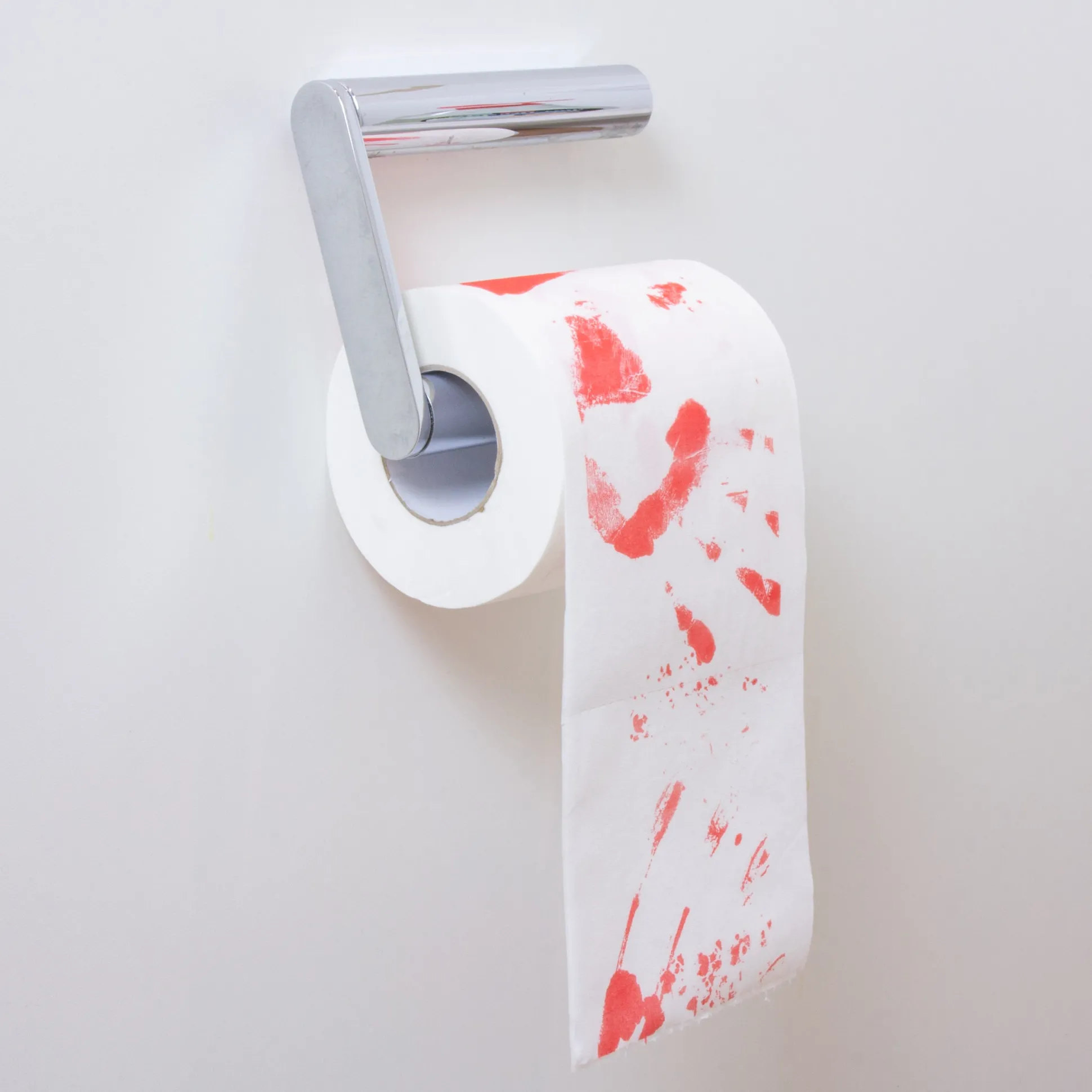 - Toilettenpapier-Rolle mit blutigen Handabdrücken