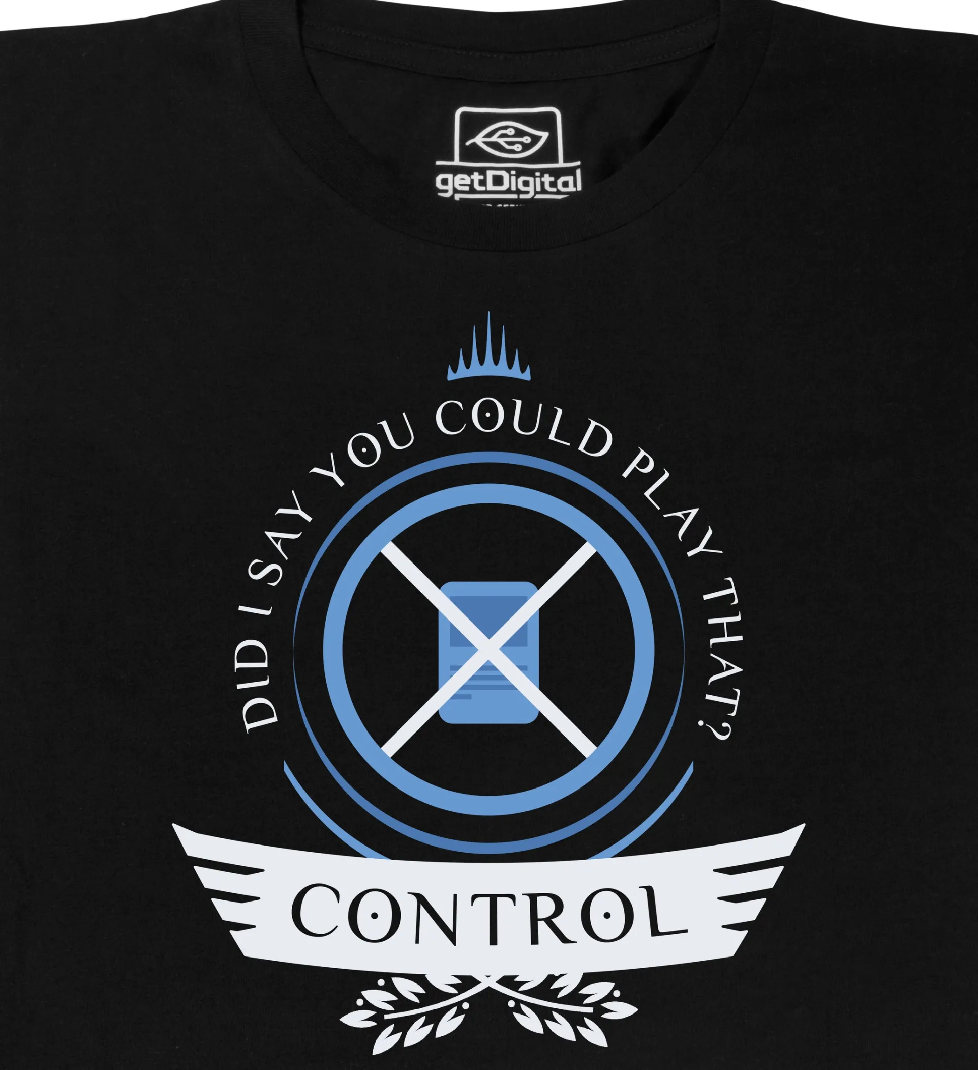Eine für den Gegner besonders nervige Taktik wird auf dem „Control Life“- Shirt gezeigt: Wenn man ein gutes Control-Deck hat, kann man sein nichtsahnendes Opfer daran hindern, Karten zu spielen. Du möchtest eine Kreatur spielen? Pech gehabt! Du möchtest einen Feuerball auf mich schleudern? Oh, was für ein Zufall, jetzt trifft der Zauberspruch Deine eigenen Kreaturen. Während der Gegner langsam verzweifelt, kann man als Control-Spieler in aller Seelenruhe die Kontrolle übernehmen und das Spiel gewinnen. 🙂