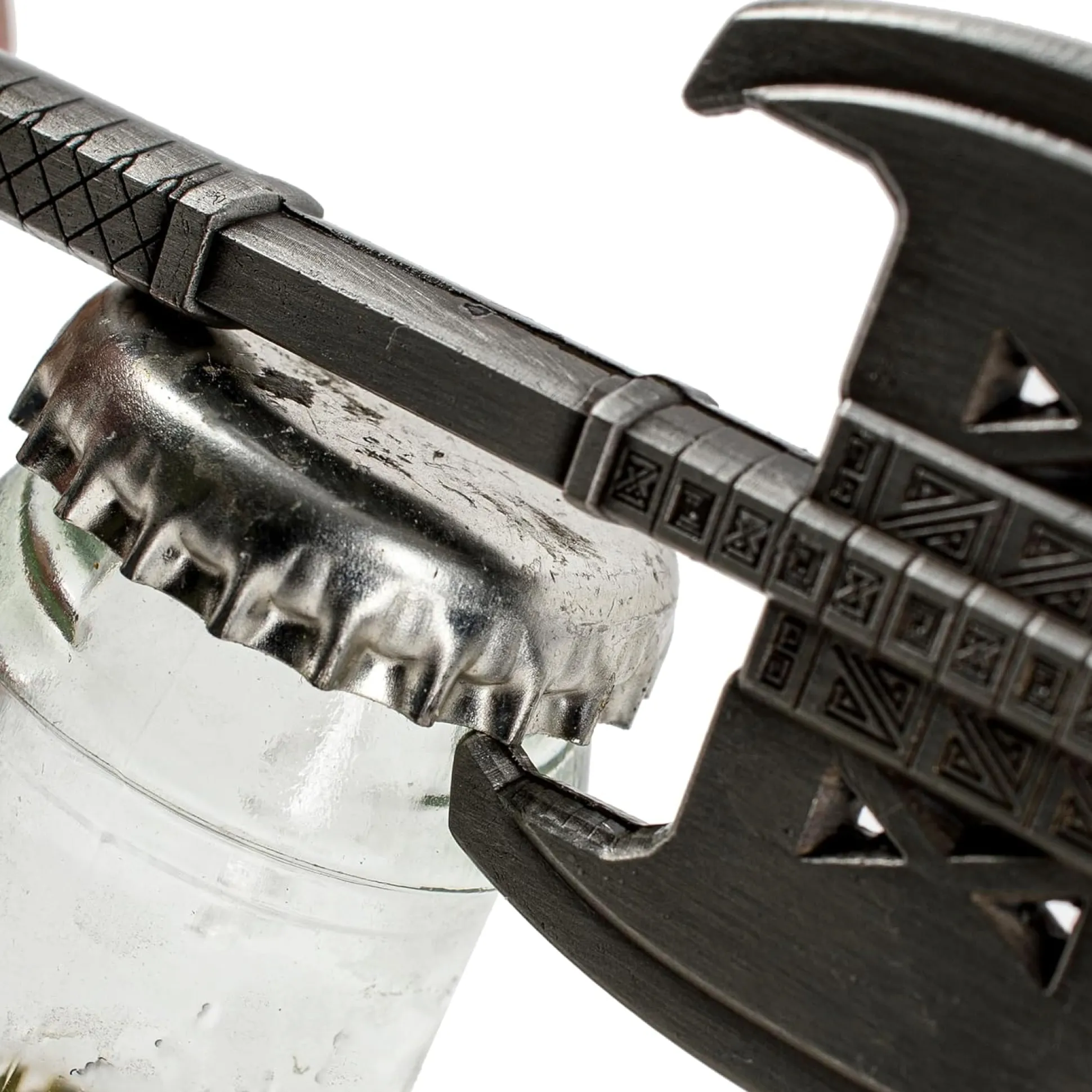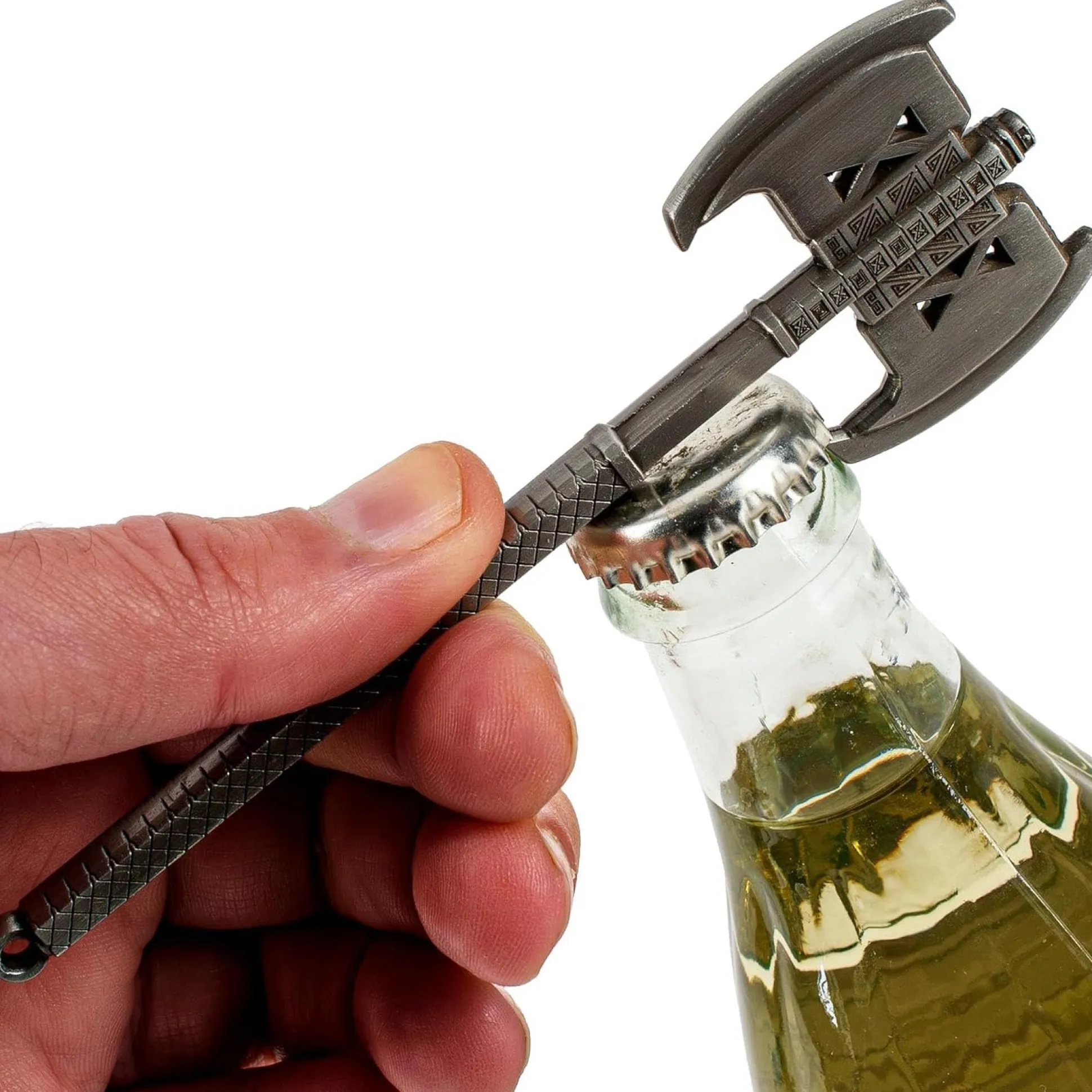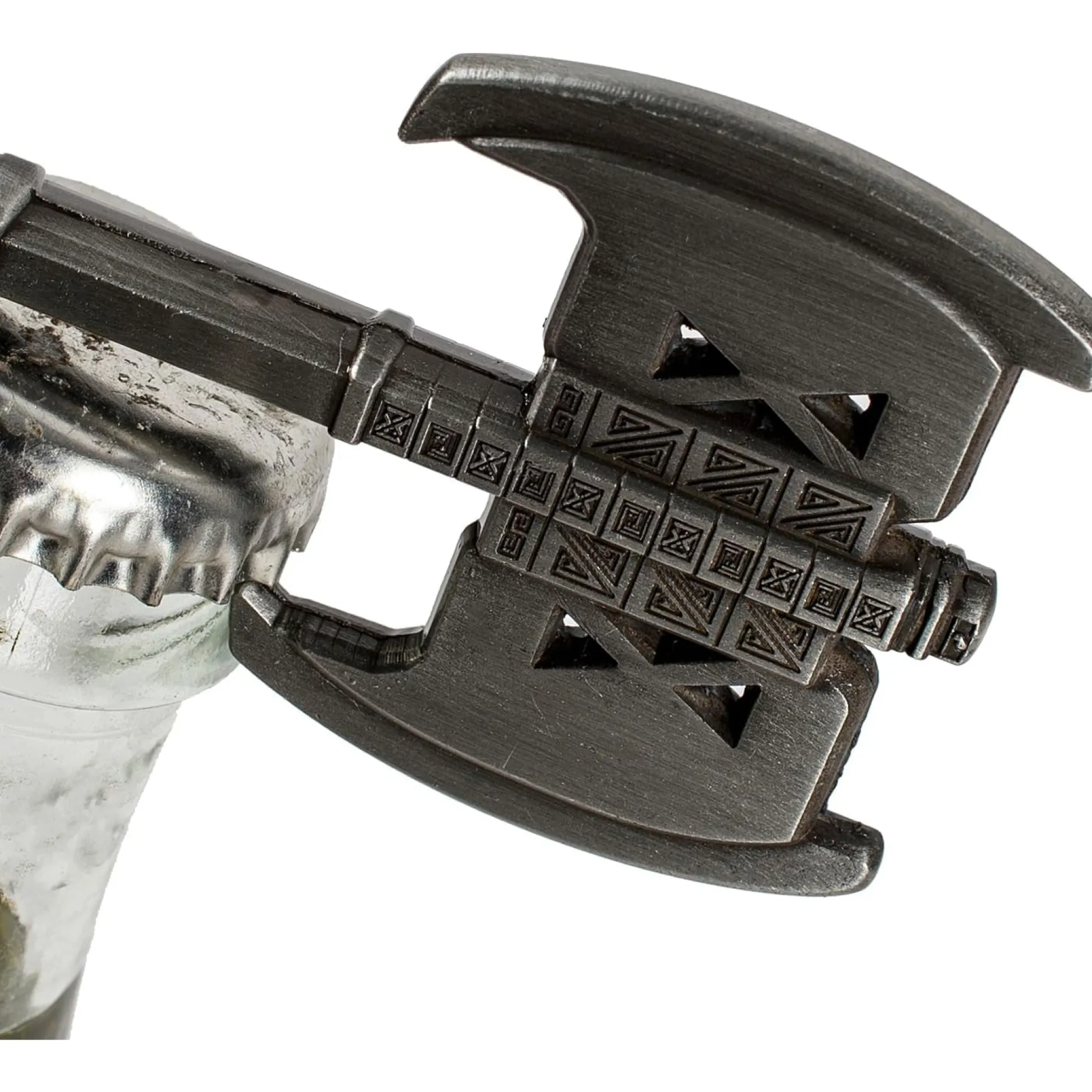 - Massiver Flaschenöffner im Design von Gimlis Axt mit Zwergen-Verzierungen