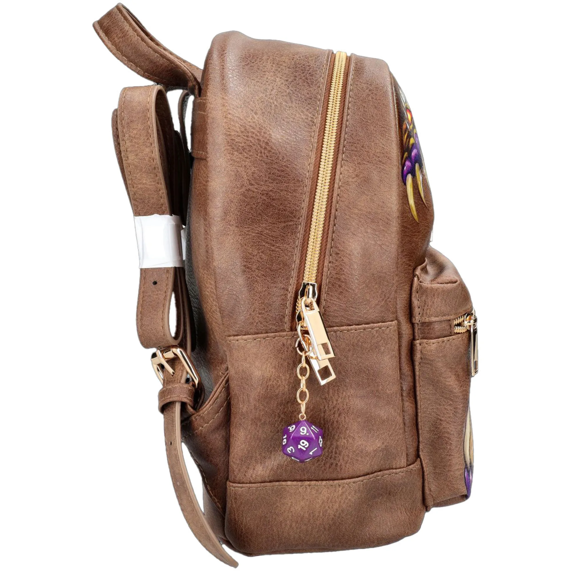 Der Rucksack ist offiziell lizenziert und besteht aus hochwertigem Kunstleder mit goldfarbenen Reißverschlüssen und einem gravierten D&D-Metalllogo auf der Front. Ein kleines, violettes W20-Würfelchen hängt stilecht am Zipper – immer bereit für spontane Glücksproben. Innen ist genug Platz für Regelbücher, Notizblöcke, Miniaturen und Proviant. Mit verstellbaren Trägern und einem versteckten Reißverschlussfach auf der Rückseite bleibt alles sicher verstaut – auch wenn dein SL mal wieder mit Random Encountern um sich wirft.