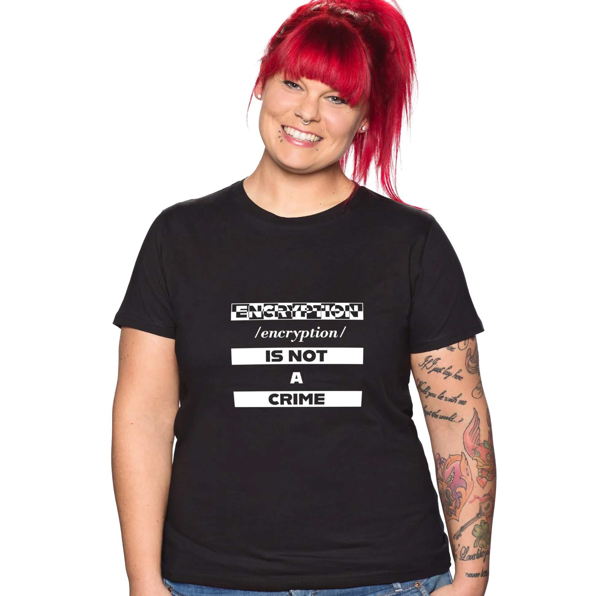 Nur weil du nichts zu verbergen hast, heißt das nicht, dass du alles zeigen musst. Nur das „Encryption is not a crime“ T-Shirt kannst du mit Stolz der ganzen Welt zeigen, damit jeder deine Haltung kennt!