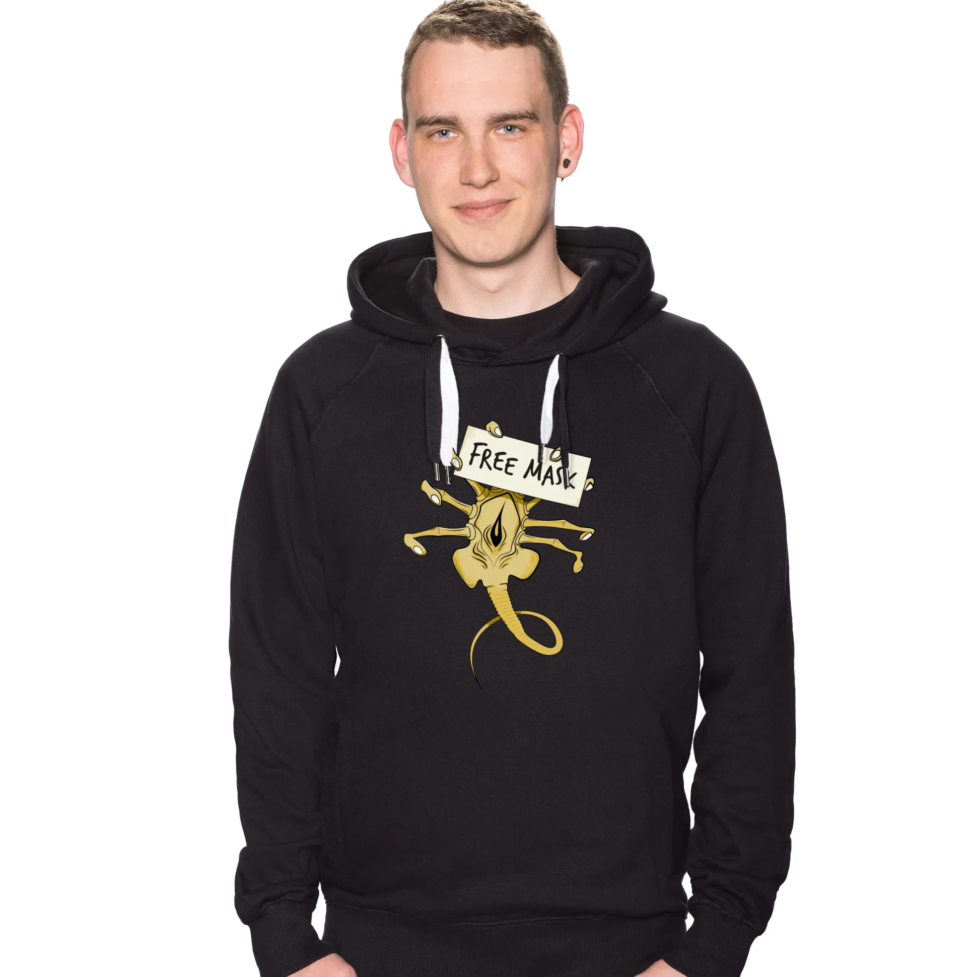 Aber zum Glück kannst Du Dir problemlos eine Maske sichern, die Du nie wieder vergessen wirst! Dafür musst Du einfach nur das Angebot des kleinen Aliens auf dem „Free Mask Facehugger“-T-Shirt annehmen. Der putzige Kerl, den wir aus einem Alien-Film kennen, legt sich dann auf dein Gesicht und wird dafür sorgen, dass Du Dir um Corona und Co. keine Sorgen mehr machen musst. 😉