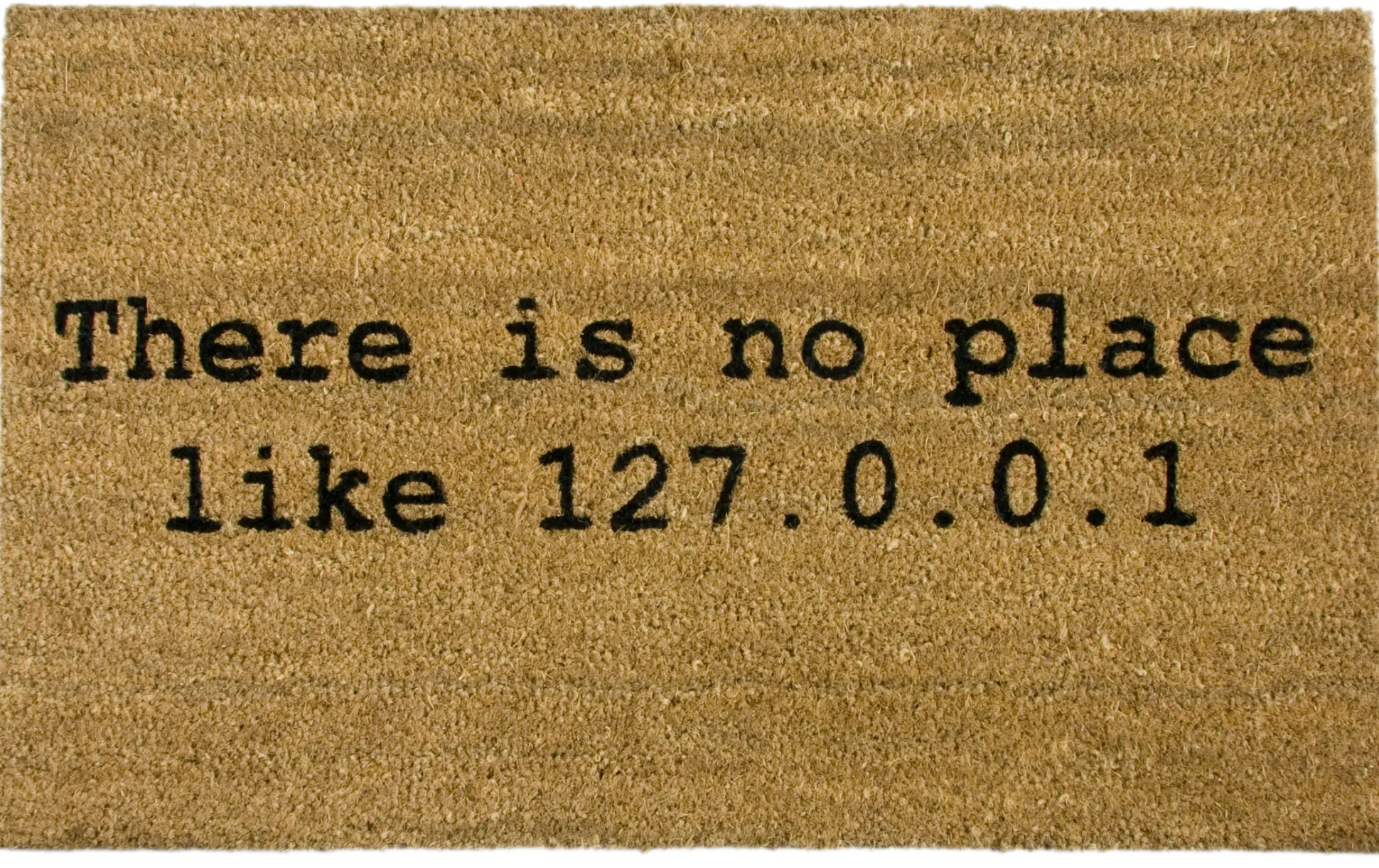 Aus der Computersprache übersetzt steht auf der Fußmatte in etwa „There is no place like home“ zu deutsch „Zuhause ist es am Schönsten“. Zur Erklärung: Die Zahlenreihe ist eine IP-Adresse, mit einer Postanschrift vergleichbar. Mit der Kennung 127.0.0.1 bezeichnet sich jeder Computer selbst, sie entspricht also der eigenen Postadresse.