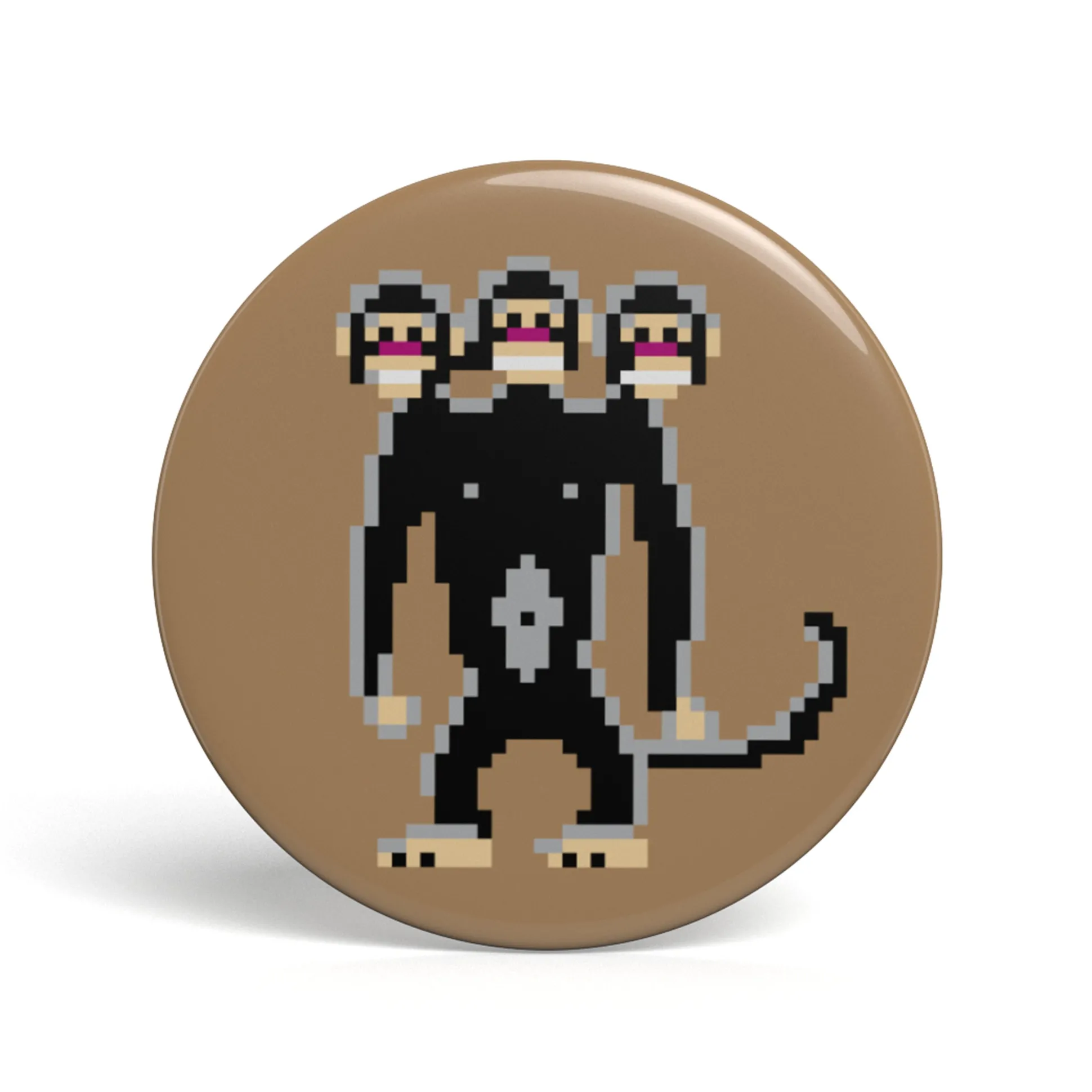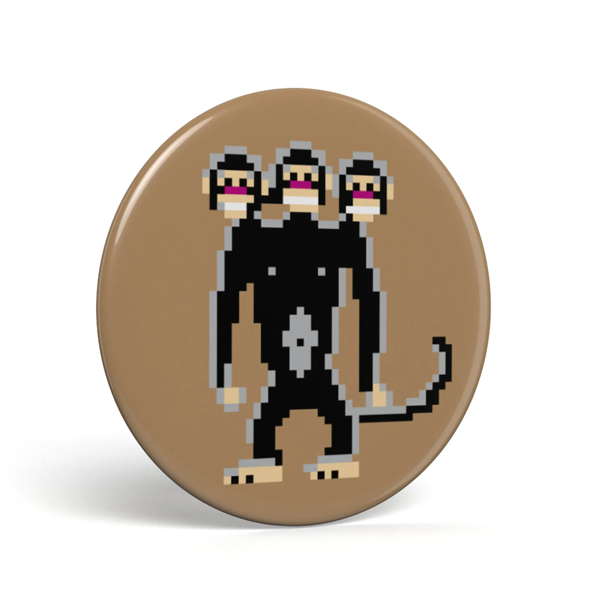 Hinter Dir, ein dreiköpfiger Affe! Wie, Du hast ihn nicht gesehen? Vielleicht kannst Du diesen Button als Spiegel benutzen, um hinter Dich zu schauen. Da ist er schon wieder!