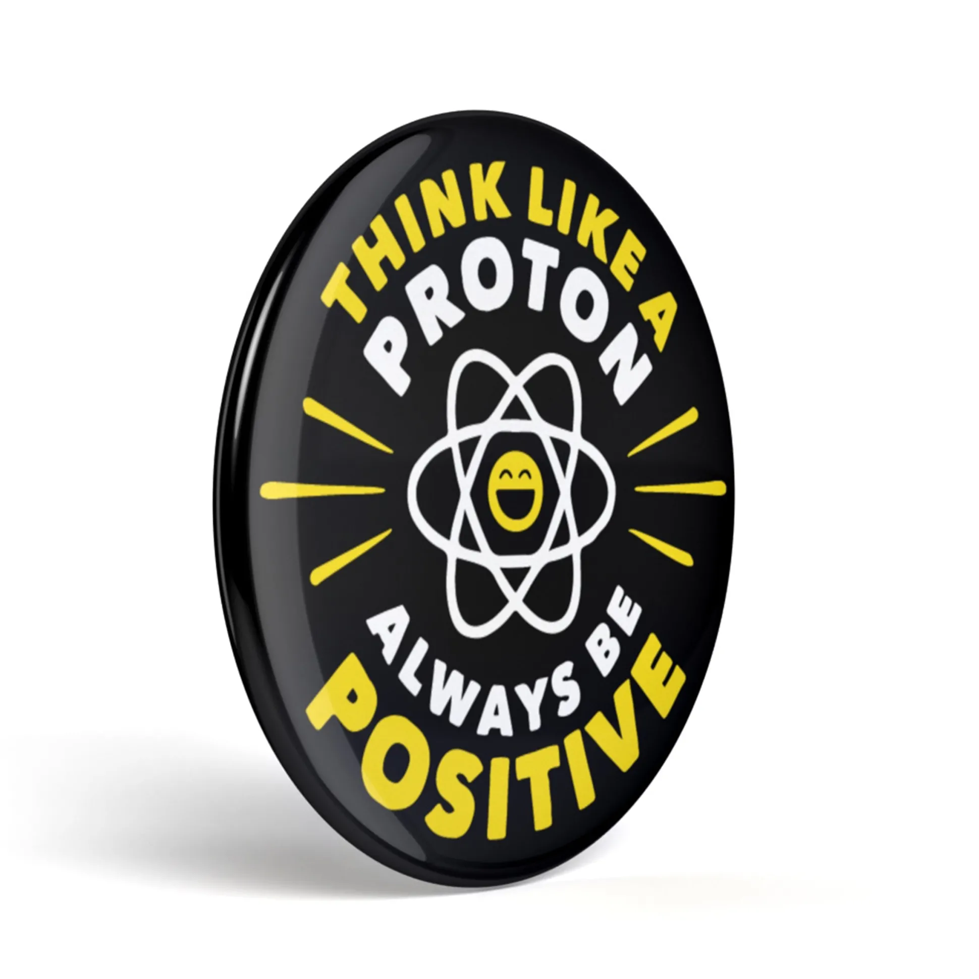 Stattdessen sollten wir uns das bescheidene Proton zum Vorbild nehmen, wie der Geek Button Think Like a Proton vorschlägt: Denn ein Proton ist von Natur aus positiv (geladen) – dementsprechend kann es gar keine negative Energie ausstrahlen (im übertragenen Sinne :D). Zugegebenermaßen klappt es nicht immer, positiv zu bleiben. Aber jeder Versuch bringt uns ein Stück näher zum idealen Protonen-Zustand. 🙂