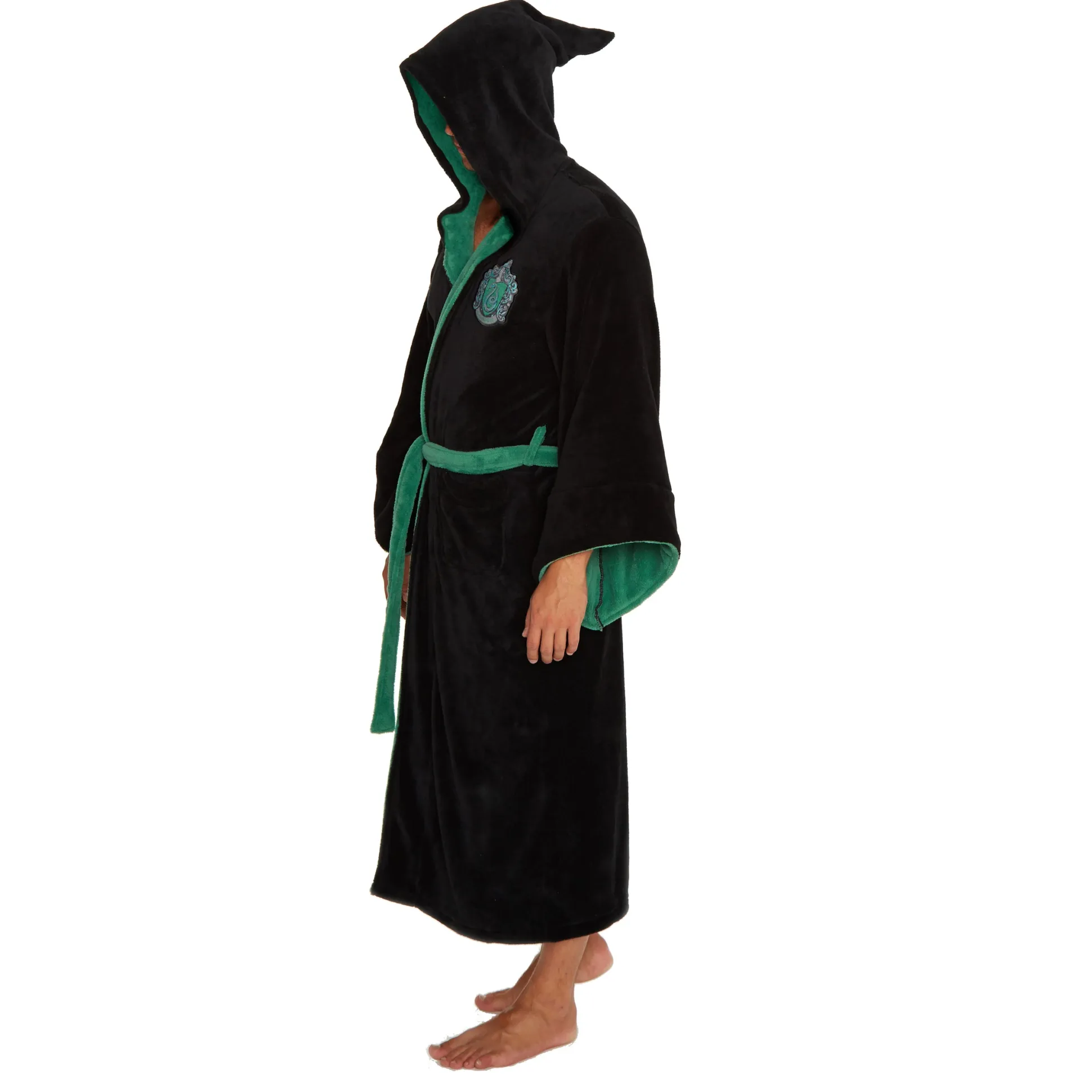 Diese flauschig weichen Bademäntel wurden in der Winkelgasse bei Madam Malkins von Hand hergestellt und werden auch Dich wohlig warm halten. Die Bademäntel der Häuser Gryffindor und Slytherin verfügen über eine spitz zulaufende Kapuze, einen Gürtel und einen Aufnäher, der je nach Variante das Wappen von Gryffindor (rot) oder Slytherin (grün) zeigt. Die Saumverzierungen und der Gürtel sind ebenfalls in den Farben des jeweiligen Hauses gehalten. Die Hogwarts-Bademäntel haben keine Kapuzen und sind mit dem Hogwarts-Wappen verziert.