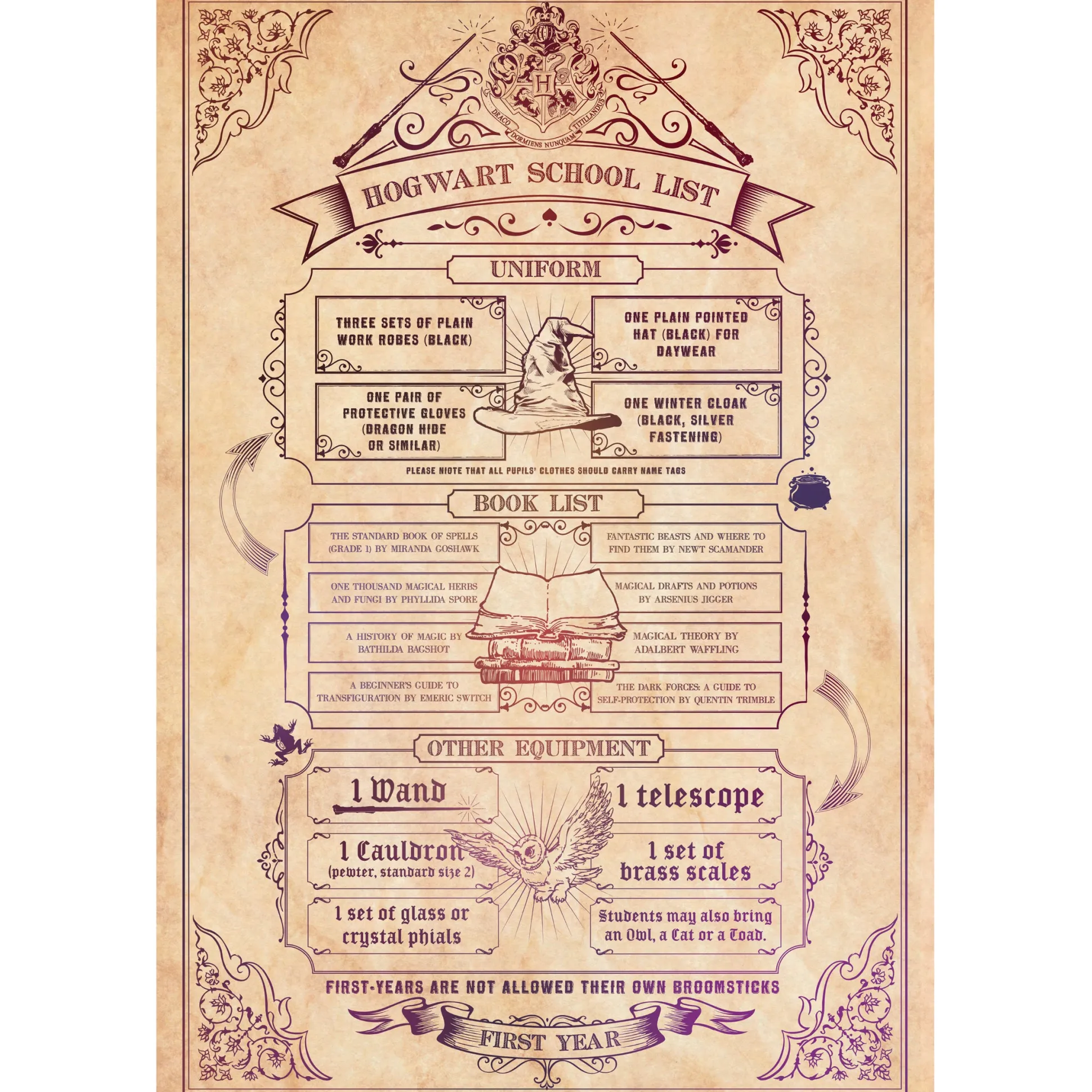- Poster mit Einkaufsliste für das erste Jahr in Hogwarts
