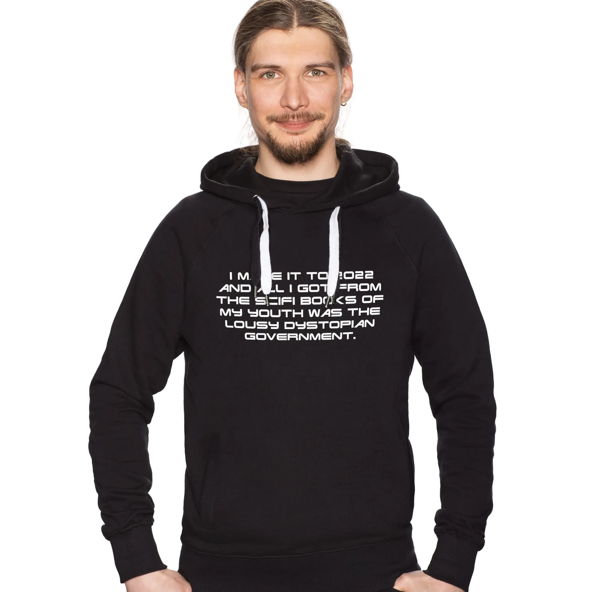 Ach warte, eine Sache hat sich doch bewahrheitet: Wie das „I made it to 2022“-Shirt zeigt, haben wir tatsächlich eine dystopische Regierung, die uns ausspioniert und über jeden Aspekt unserer Leben Bescheid wissen möchte. Ganz so schlimm wie in [i]1984[/i] ist es noch nicht, aber wer weiß, was NSA, BND und Co in Zukunft so geplant haben. [i]Big Brother is watching you![/i]