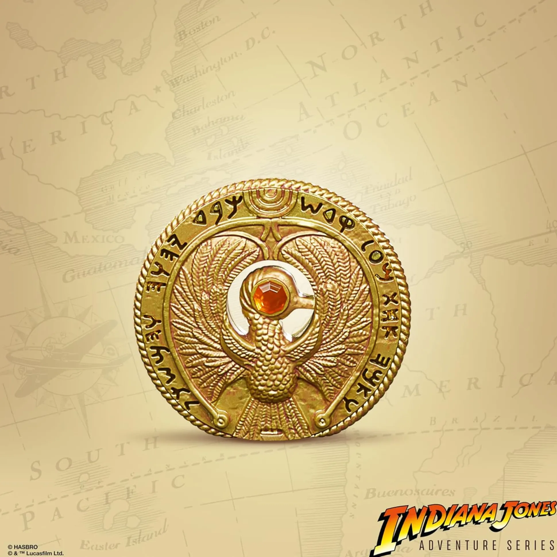 Der detailgetreue elektronische Talisman kommt mit beleuchteten Inschriften, einem zentralen Lichtkristall sowie einem hochwertigen Präsentationsständer, der dem Boden der Sonnentempel-Szene nachempfunden ist. Das Kopfstück selbst ist abnehmbar, besitzt eine metallische Optik und Haptik und wurde dem legendären Medaillon nachempfunden, mit dem Indy die geheime Lage der Bundeslade in der Karte von Tanis offenlegt. Lichtaktivierte Effekte bringen das Replikat wortwörtlich zum Strahlen – perfekt für dunkle Grabkammern oder Wohnzimmer mit Dämmerlicht. Zur Stromversorgung verwendet das Replikat 2xAA Batterien (Nicht enthalten).