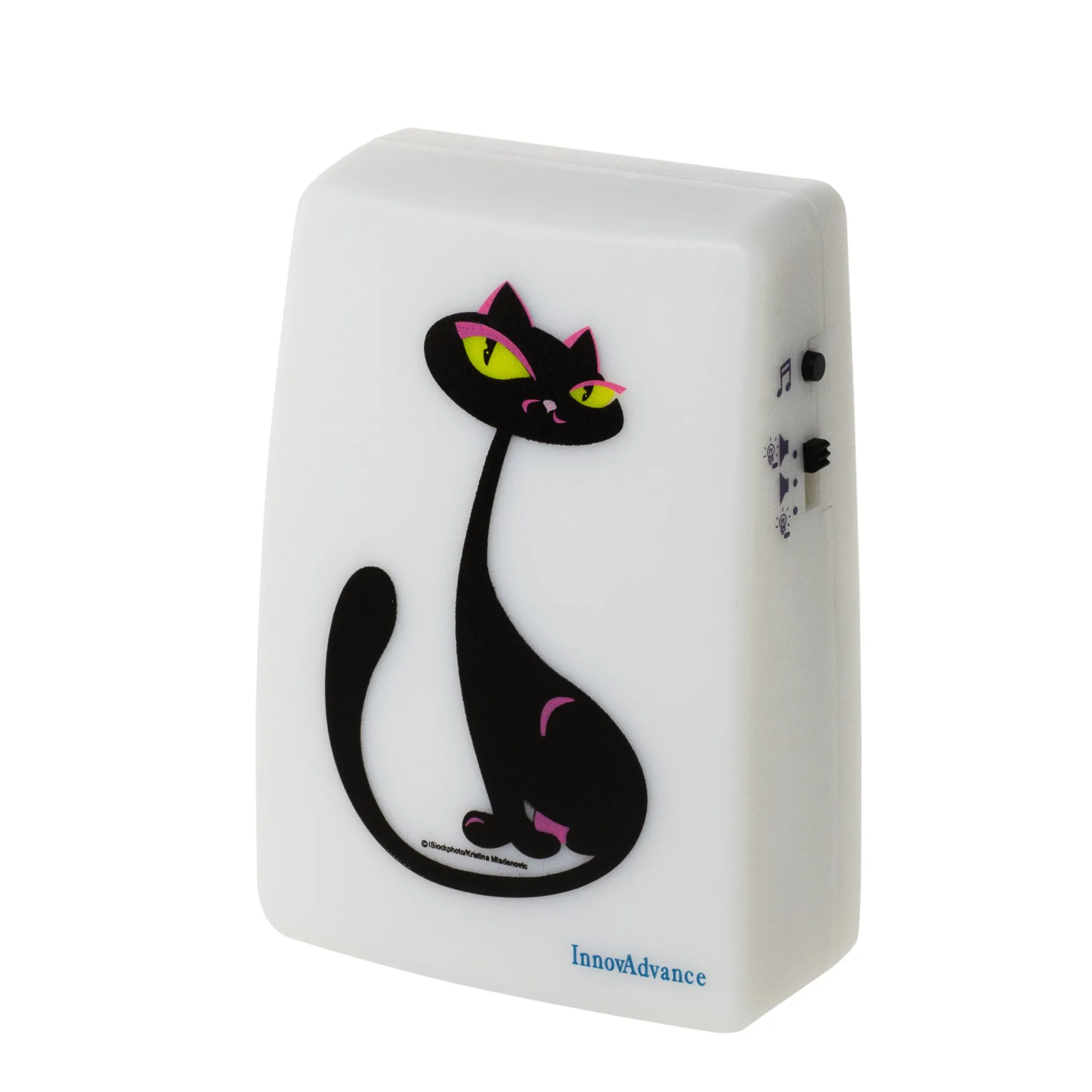 - Die Klingel gibt mit Ton, Licht oder beidem an, wenn die Katze am Eingang wartet.