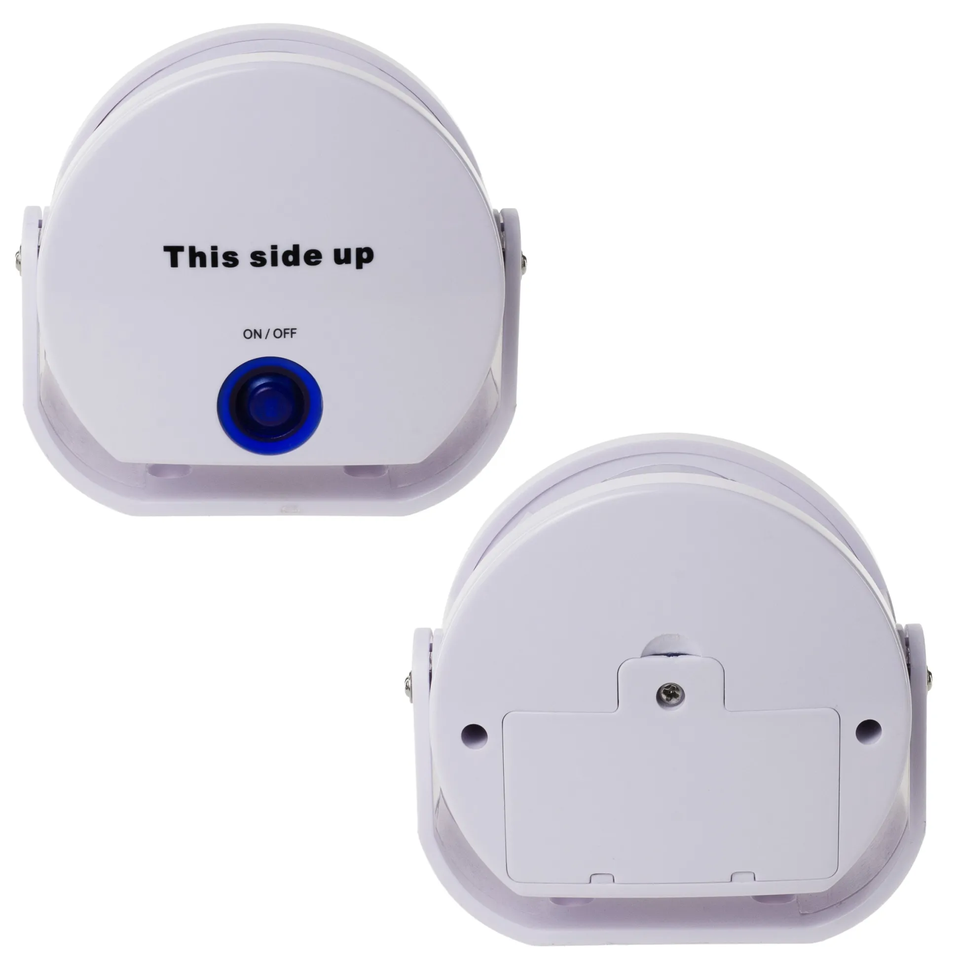 Der Sensor ist über Hochfrequenz mit der Klingel verbunden. Löst die Katze den Sensor aus, zeigt das die Klingel an. Dabei kannst Du wählen, ob Du mit Ton, einem Farbwechsel (siehe Fotos) oder beidem benachrichtigt werden möchtest. Die Lautstärke ist regelbar.