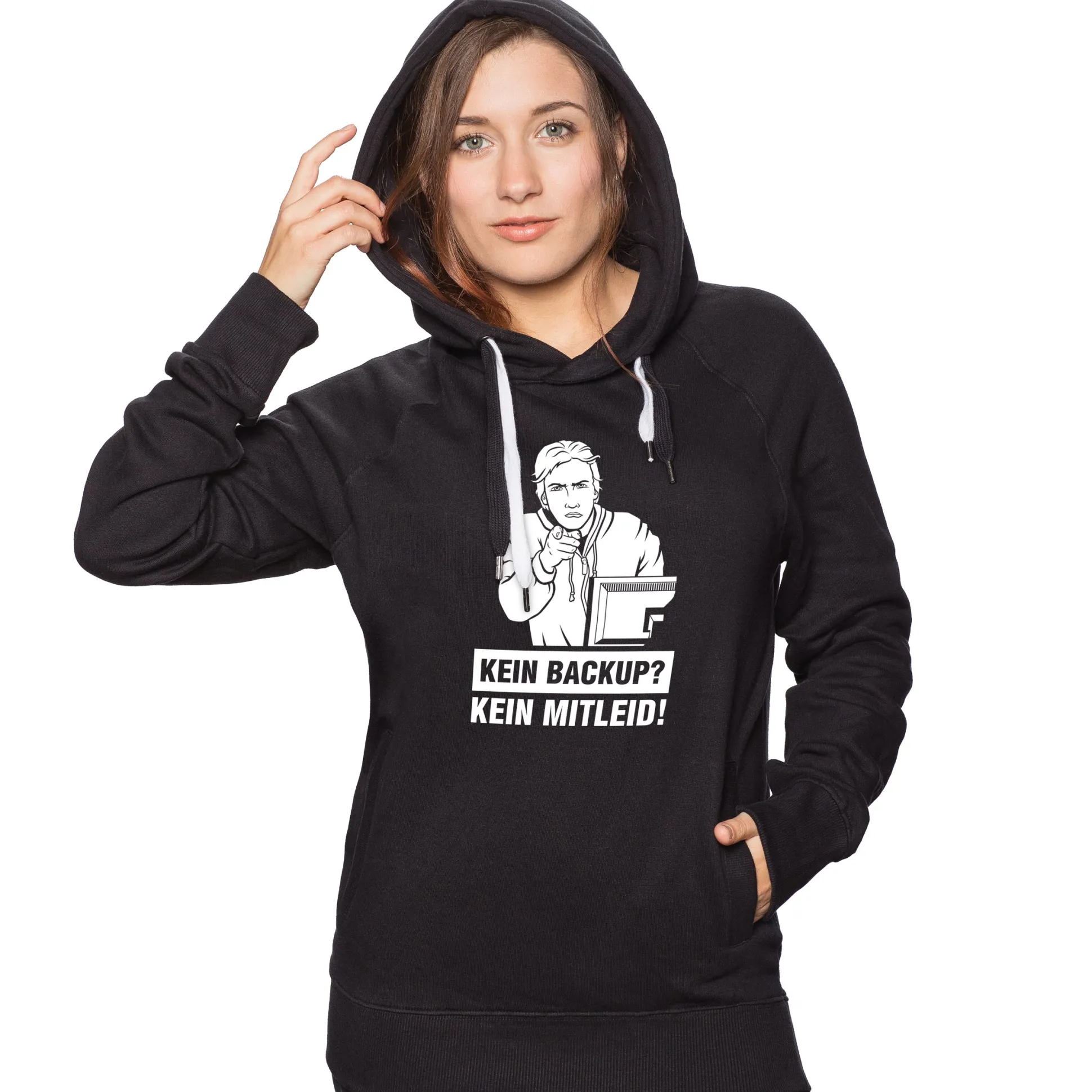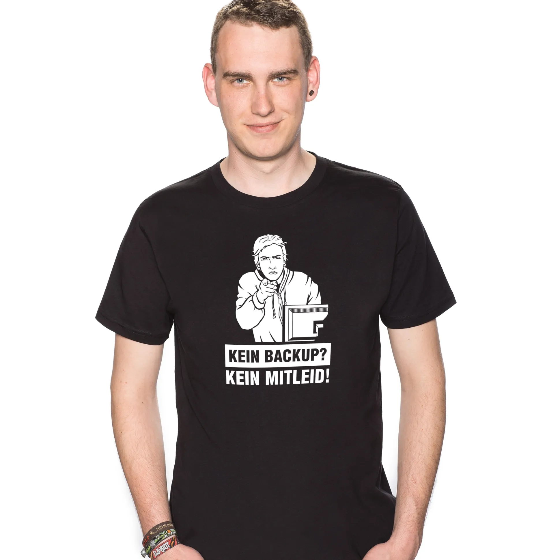 Wir finden: Selbst Schuld! Das „Kein Backup – Kein Mitleid“-Shirt zeigt klar und deutlich, was man in so einem Fall von der IT-Abteilung erwarten kann: Ein müdes Grinsen und ganz bestimmt kein Mitgefühl! Beim nächsten Mal also regelmäßig Kopien erstellen, das spart allen beteiligten jede Menge Zeit und Nerven. Man sagt ja nicht umsonst: [i]“Save early, save often!“[/i] 😉