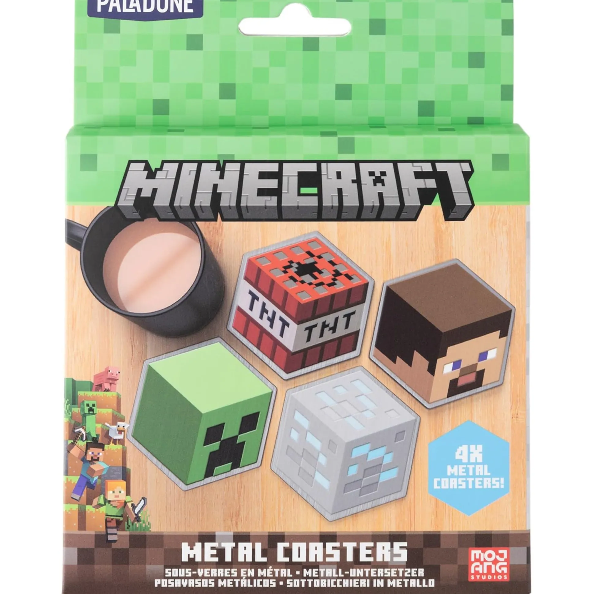 - Vier Metall-Untersetzer mit Motiven von Steve, Creeper, TNT & Diamanterz