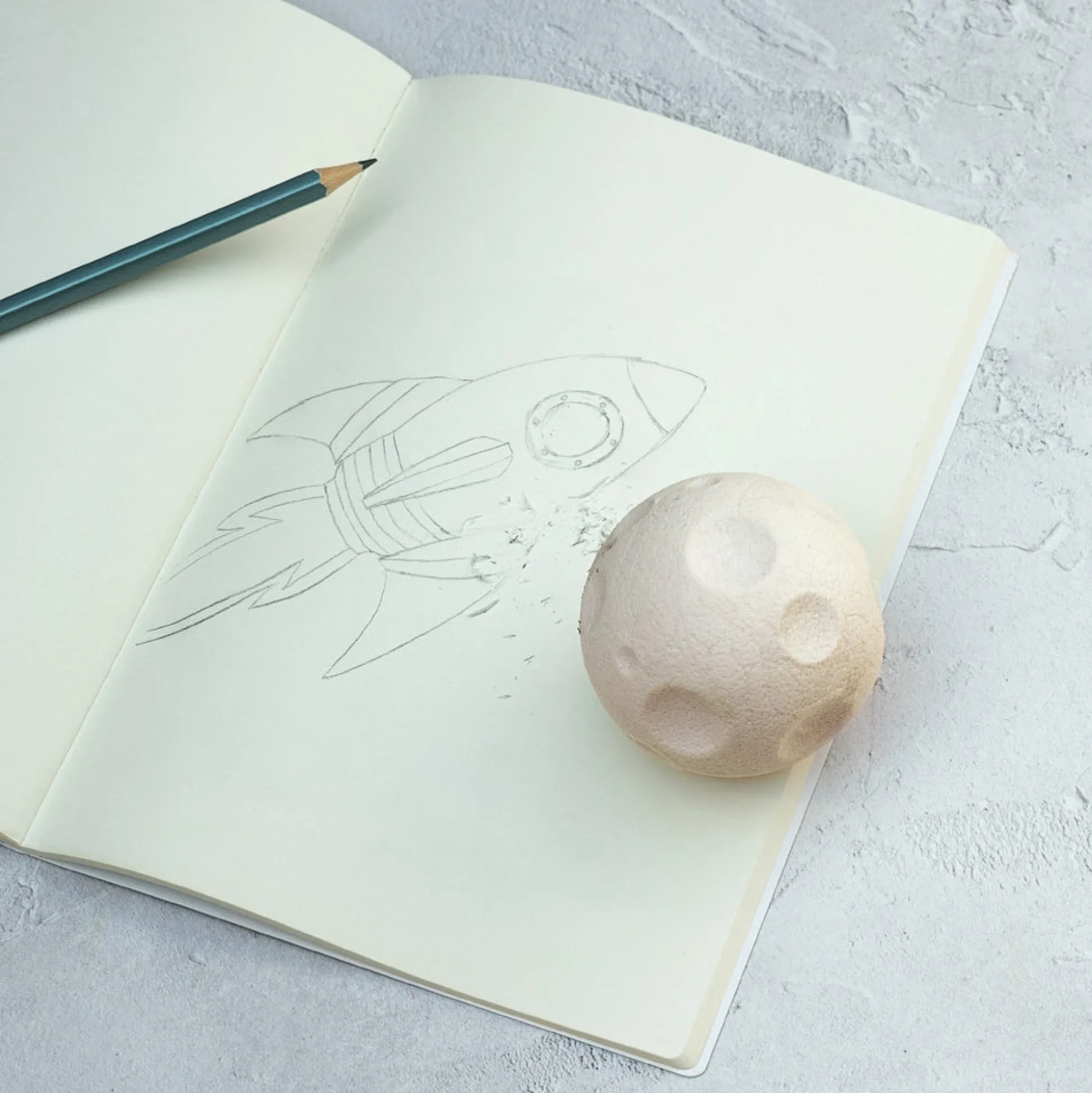 Selbst Nerds wie wir machen mal Fehler beim Aufstellen unserer Differentialgleichungen und dem Zeichnen von Blaupausen für Raumschiffe, die uns endlich in die unendlichen Weiten des Weltraums bringen sollen. Für solche Fälle gibt es glücklicherweise das Mond Radiergummi!Mit diesem praktischen Utensil bringst du etwas Weltraum-Flair auf deinen Schreibtisch.