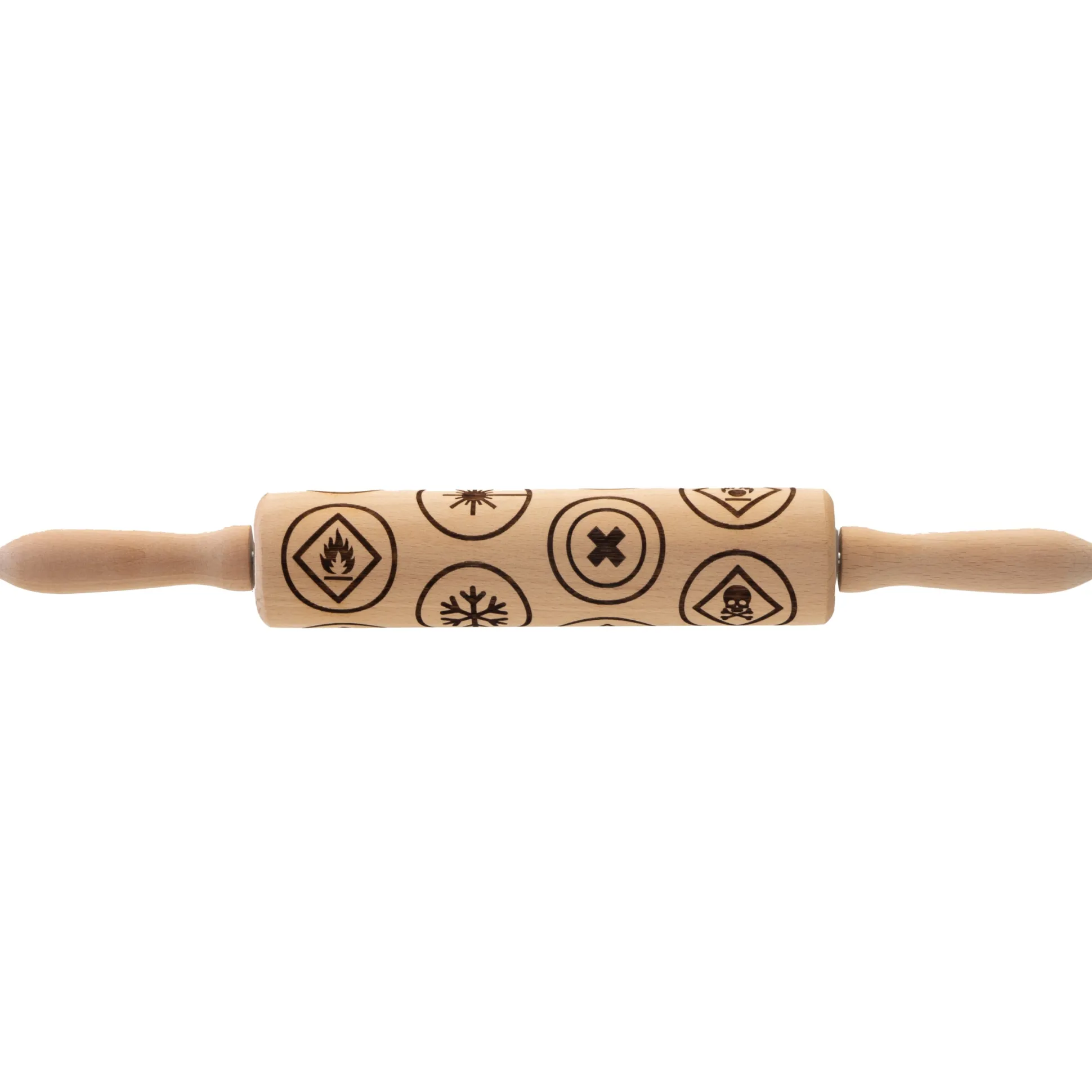 - Motiv-Teigrolle aus Buchenholz mit gängigen Warnsymbolen