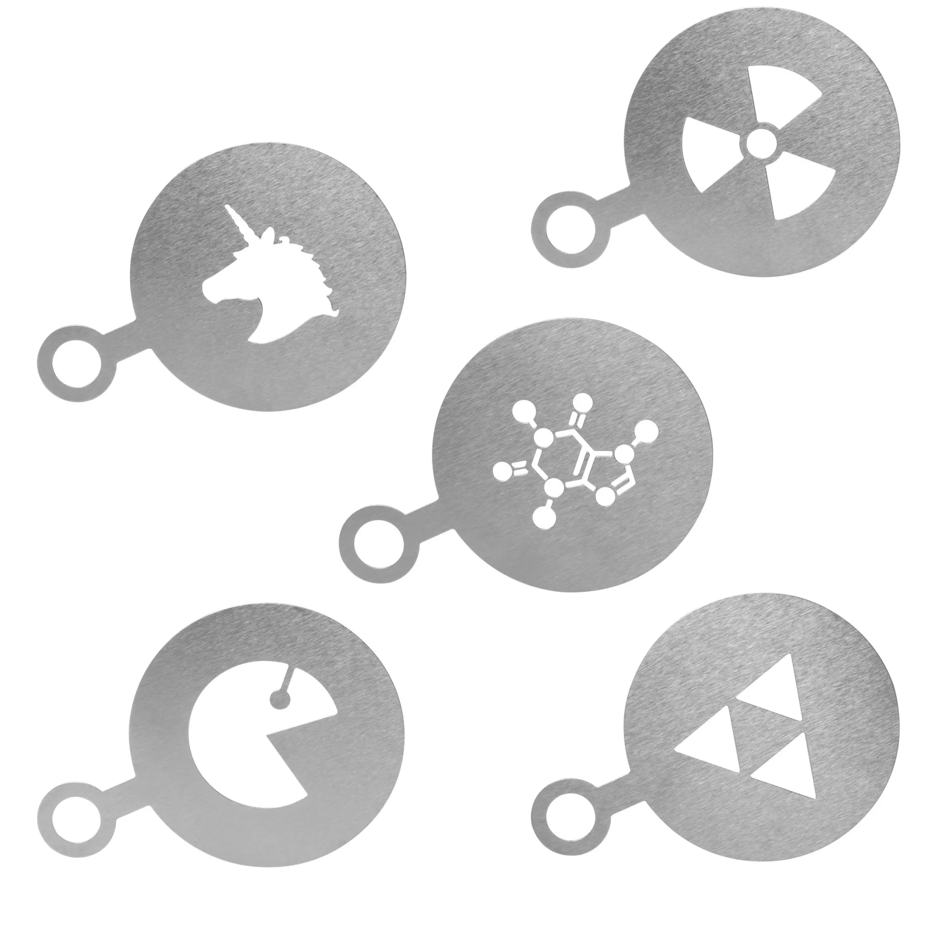 - Set aus 5 Edelstahlschablonen zum Dekorieren von Heißgetränken