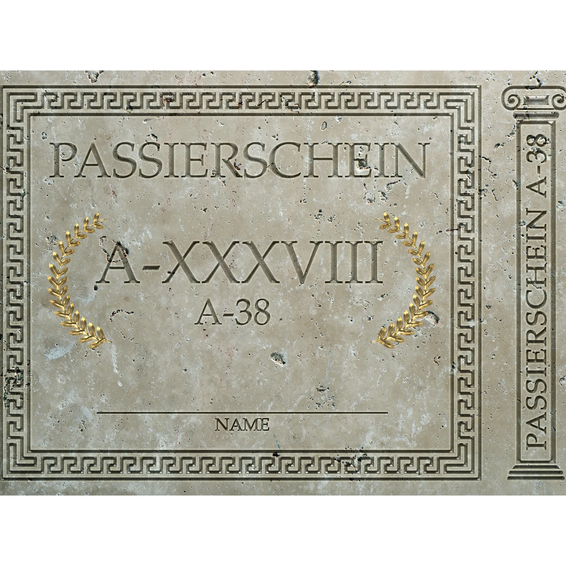 Seine Belohnung: der legendäre Passierschein A38 im Zehnerpack! Dieses sagenumwobene Schriftstück mussten die Gallier als Teil eines Wettkampfs mit Caesar in ihren Besitz bringen, was ihnen mit einer List auch gelang. Damit Du Dich nicht durch die Hölle der römischen Bürokratie kämpfen musst, findest Du in diesem Set gleich zehn Exemplare des Passierscheins in der aktualisierten Fassung nach Rundschreiben B-LXIV. Die goldenen Lorbeerkränze lassen direkt erahnen, dass Du ein wahrlich wichtiges Stück Geschichte in den Händen hältst. Und keine Sorge, den Passierschein A39 nach Rundschreiben B65 musst Du uns natürlich nicht vorlegen. 😉