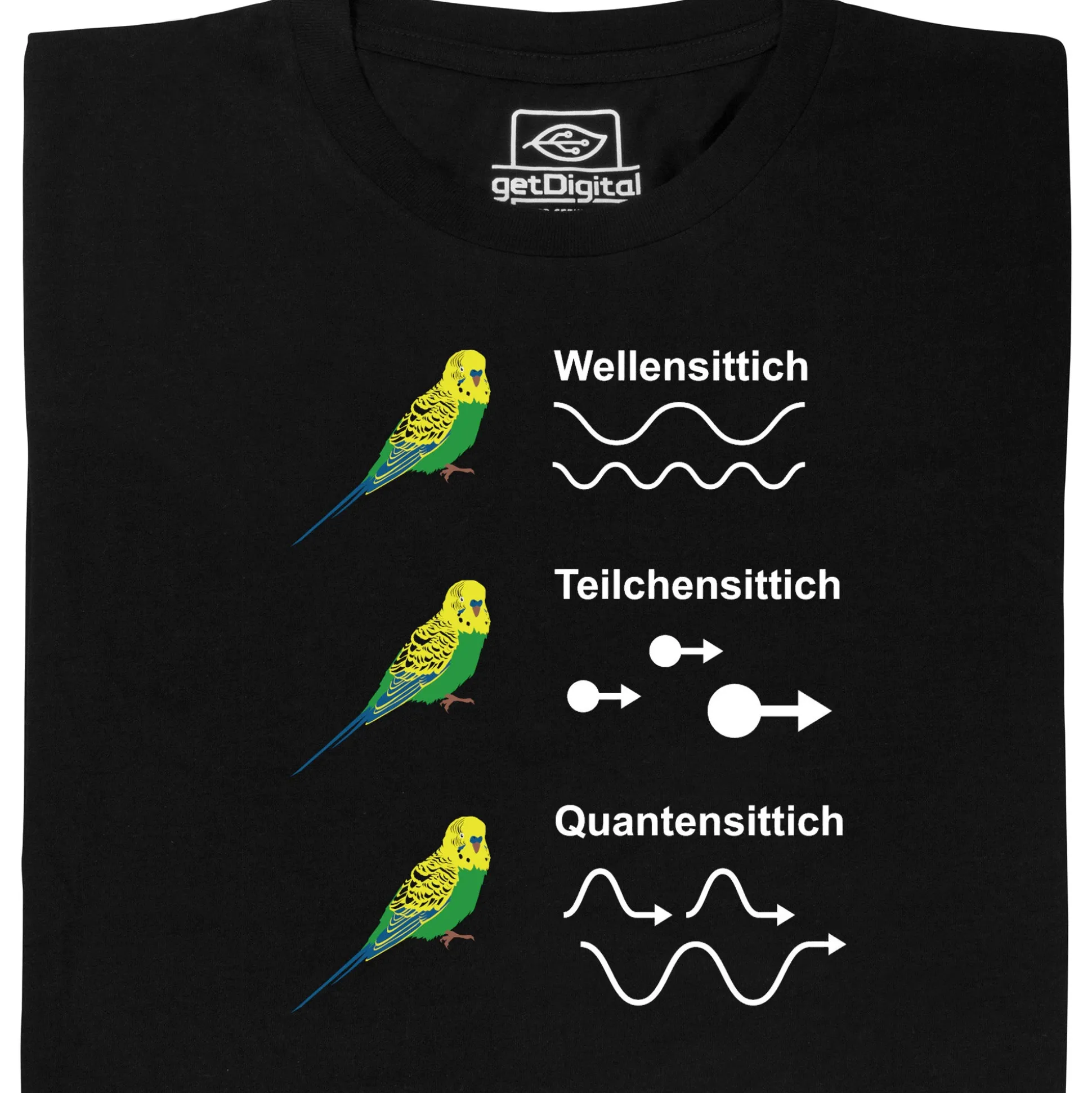 Aber für alle leidenschaftlichen Physiker unter euch, die sich schon beim Anblick des Quantensittich T-Shirts nicht mehr halten können vor Lachen, haben wir noch den passenden Witz dazu: