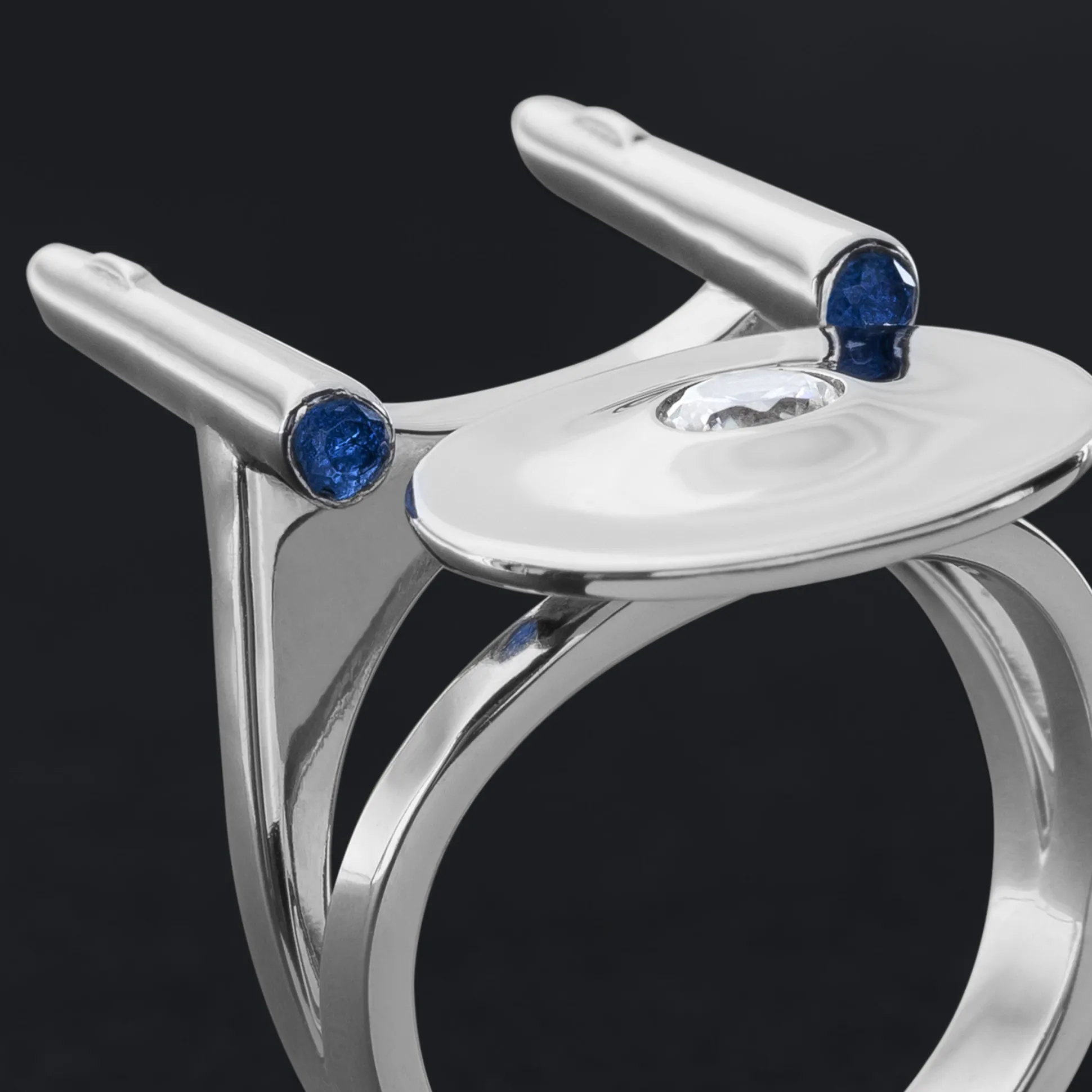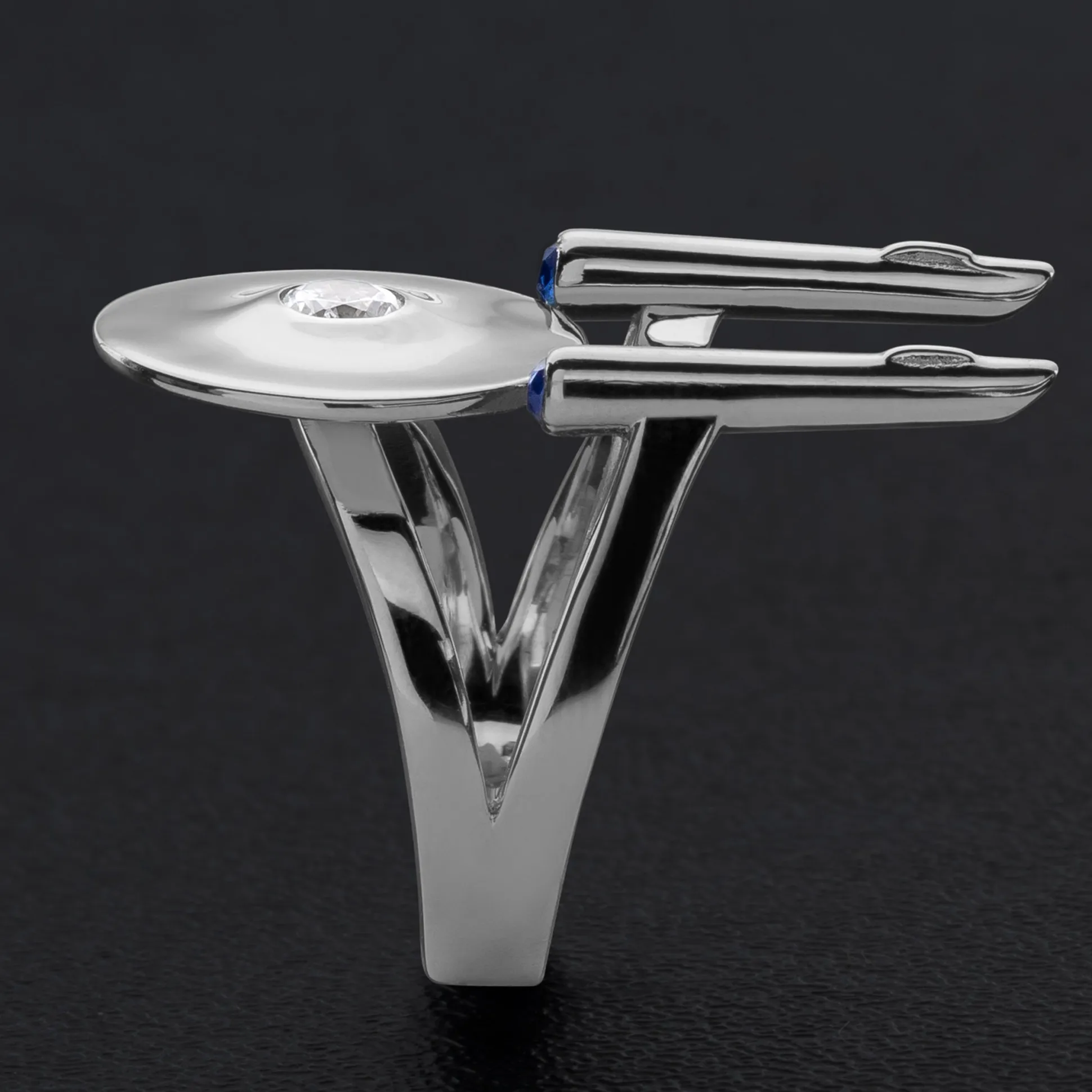 Dieses Schmuckstück aus 925er Silber in der Form eines Raumschiffes wird nicht zuletzt durch die Ziersteine die Aufmerksamkeit Deiner Umgebung auf sich ziehen und die Blicke aller Betrachter bannen. Durch das schlichte und subtile Design macht dieser Ring zu jedem Anlass eine gute Figur, sei es auf Hochzeiten, Akademieentlassungsfeiern oder in mysteriösen Ritualen außerirdischer Völker.