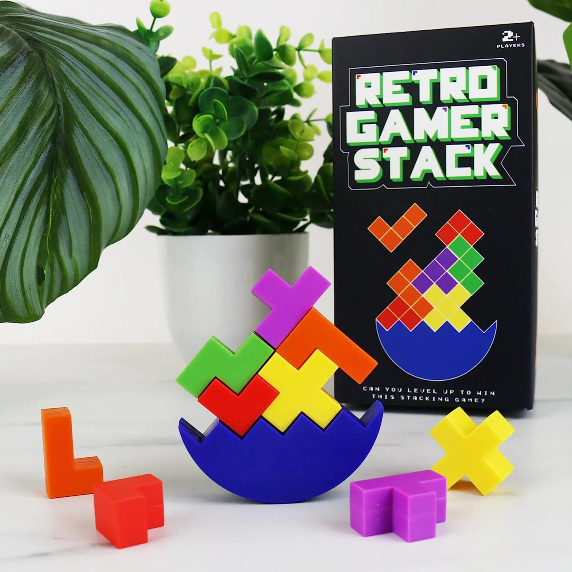 Tatsächlich macht das Retro Gamer Stapelspiel fast genauso viel Spaß wie Tetris, dem es durch das Aussehen der stapelbaren Blöcke etwas ähnelt. Allerdings brauchst du dafür nicht nur eine gute Konzentration, sondern außerdem noch ein ruhiges Händchen und einen oder mehrere Mitspieler. Wie in der (englischen) Anleitung beschrieben, werden die Spielsteine gleichmäßig aufgeteilt, bevor ihr sie abwechselnd auf die blaue Basis stapeln müsst. Das ist schwieriger, als es aussieht. Wenn das Gebilde aus dem Gleichgewicht gerät und umfällt, verliert der Spieler, der den letzten Block aufgelegt hat.