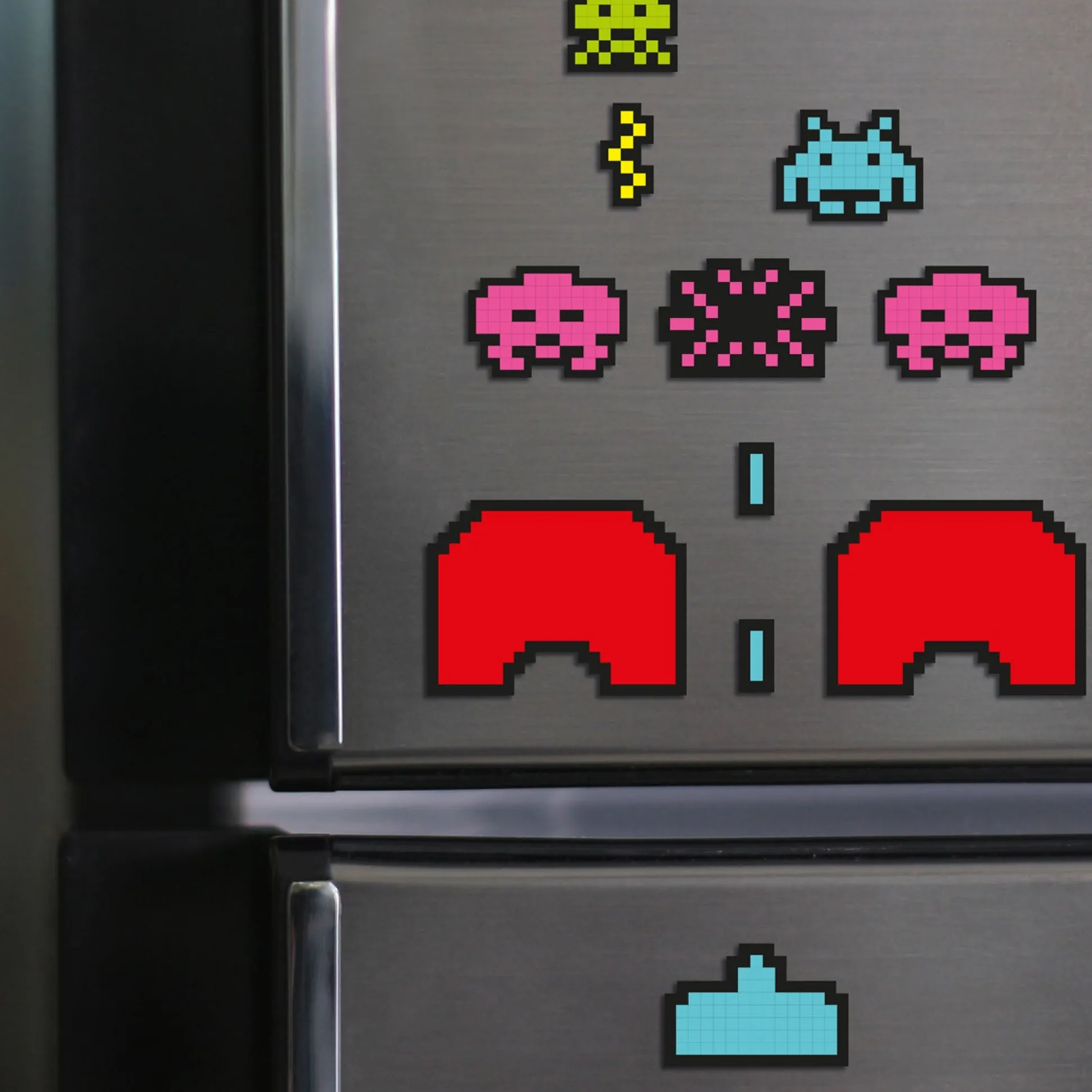Erstelle deine eigenen Space Invader Level direkt auf deinem Kühlschrank! Perfekt für alle Retro Gamer, Nostalgiker oder einfach alle die einen Faible für nerdige Deko haben.