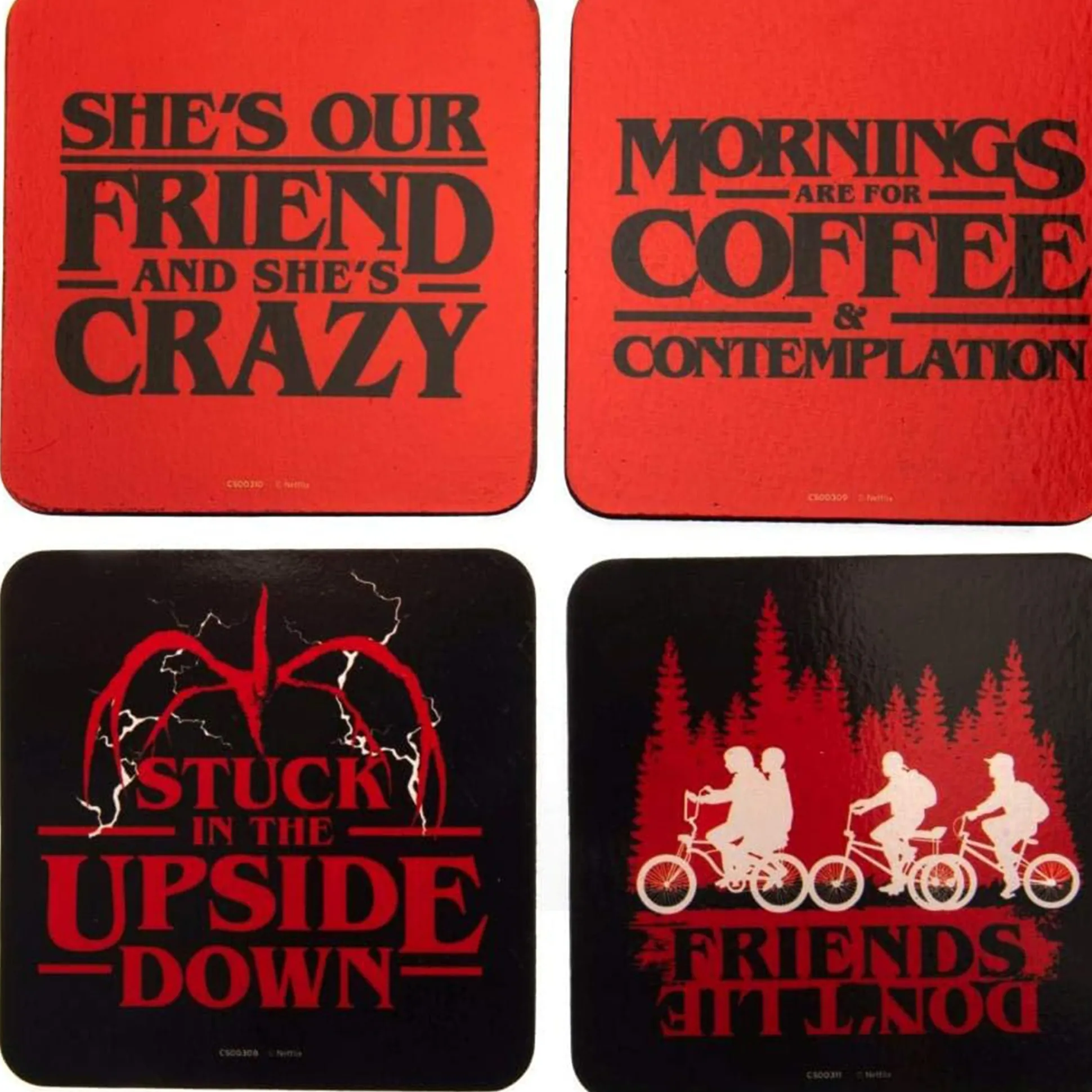 - 4 Untersetzer mit Motiven und Zitaten aus der Netflix-Serie „Stranger Things“