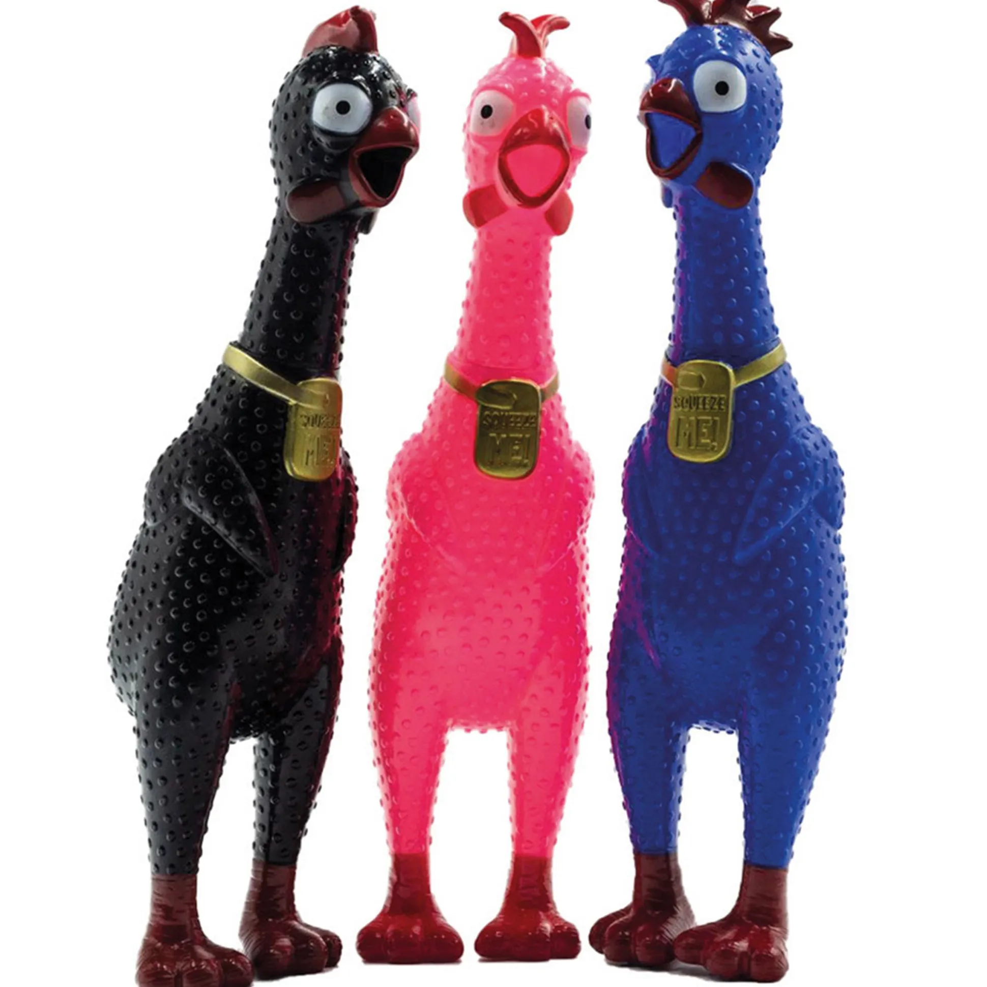 - Gummihuhn, das nach dem Zusammendrücken einen sehr lauten, schrillen Ton von sich gibt