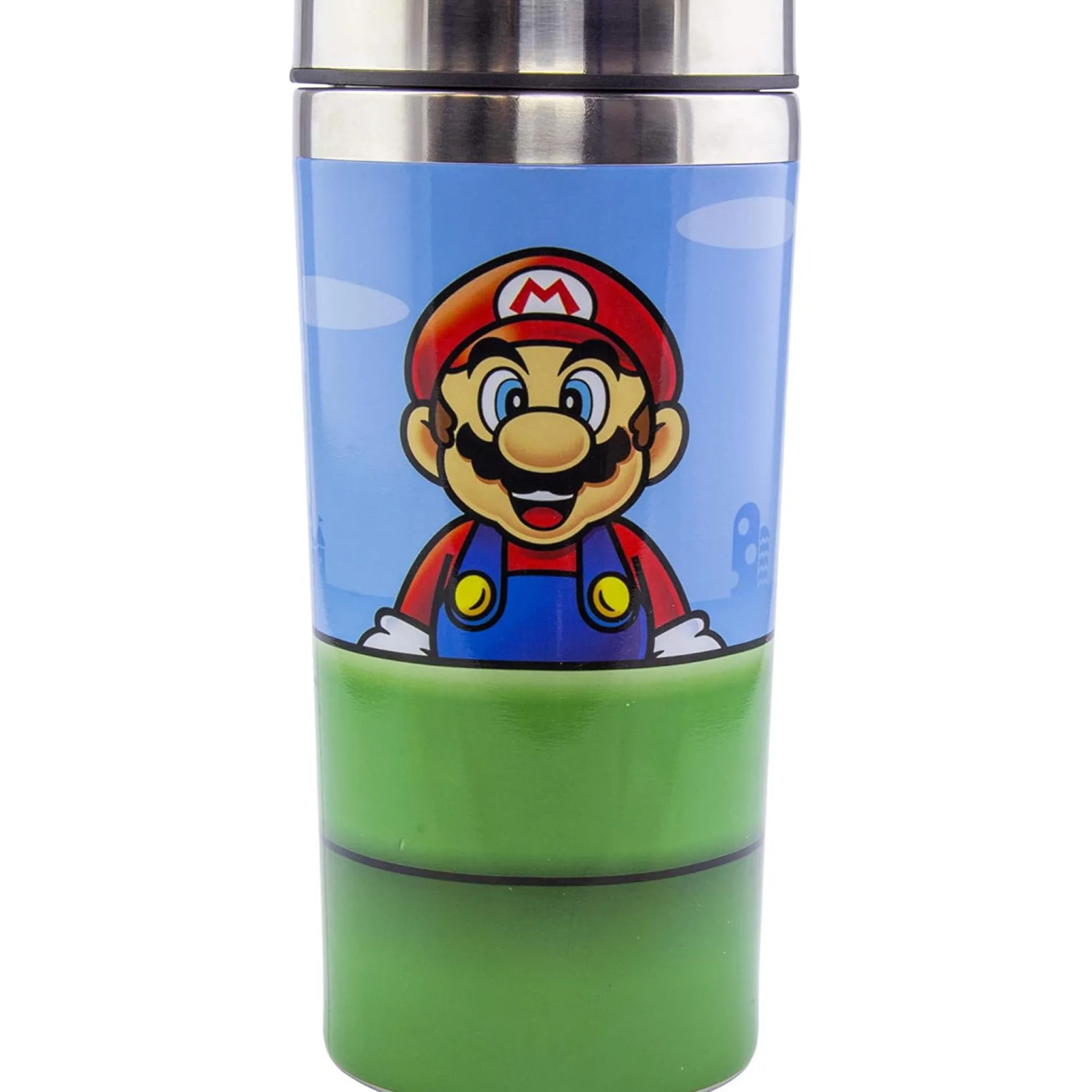 - Edelstahl-Reisebecher (ca. 450 ml) mit Kunststoffdeckel und Mario/Luigi-Motiv