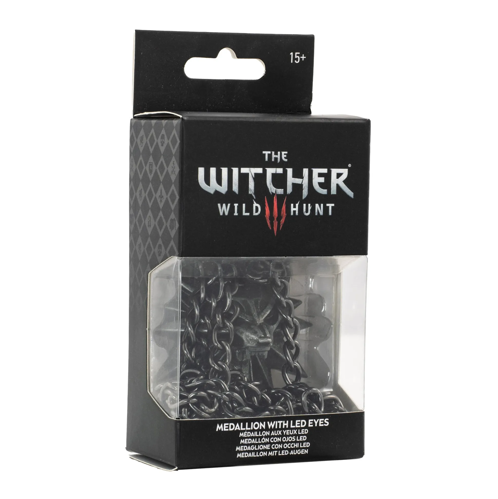 Diese Replik des Wolfsmedaillons aus Witcher 3 Wild Hunt ist zwar nicht wie das Original aus Silber, sondern aus hochwertigem Metall. Auf der Rückseite können die roten LEDs in den Augen eingeschaltet werden. Eine 80 cm lange Metallkette ist ebenfalls im Lieferumfang enthalten.